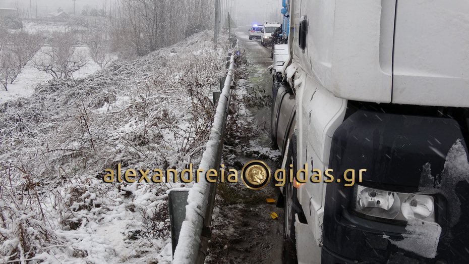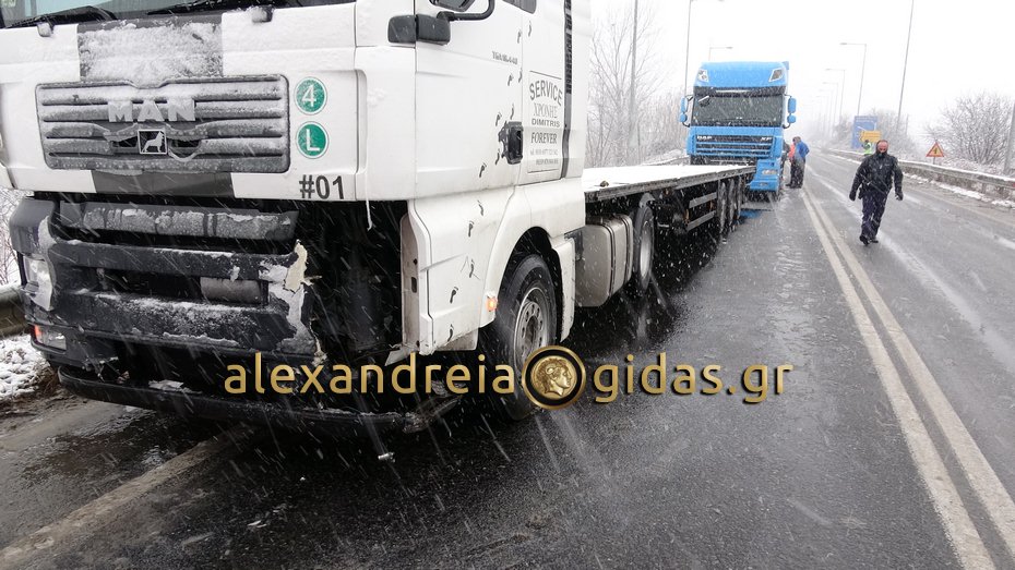 ΤΩΡΑ: Τροχαίο στον κόμβο Νησελίου πριν την Εγνατία – “δίπλωσαν” δύο νταλίκες (φώτο-βίντεο)