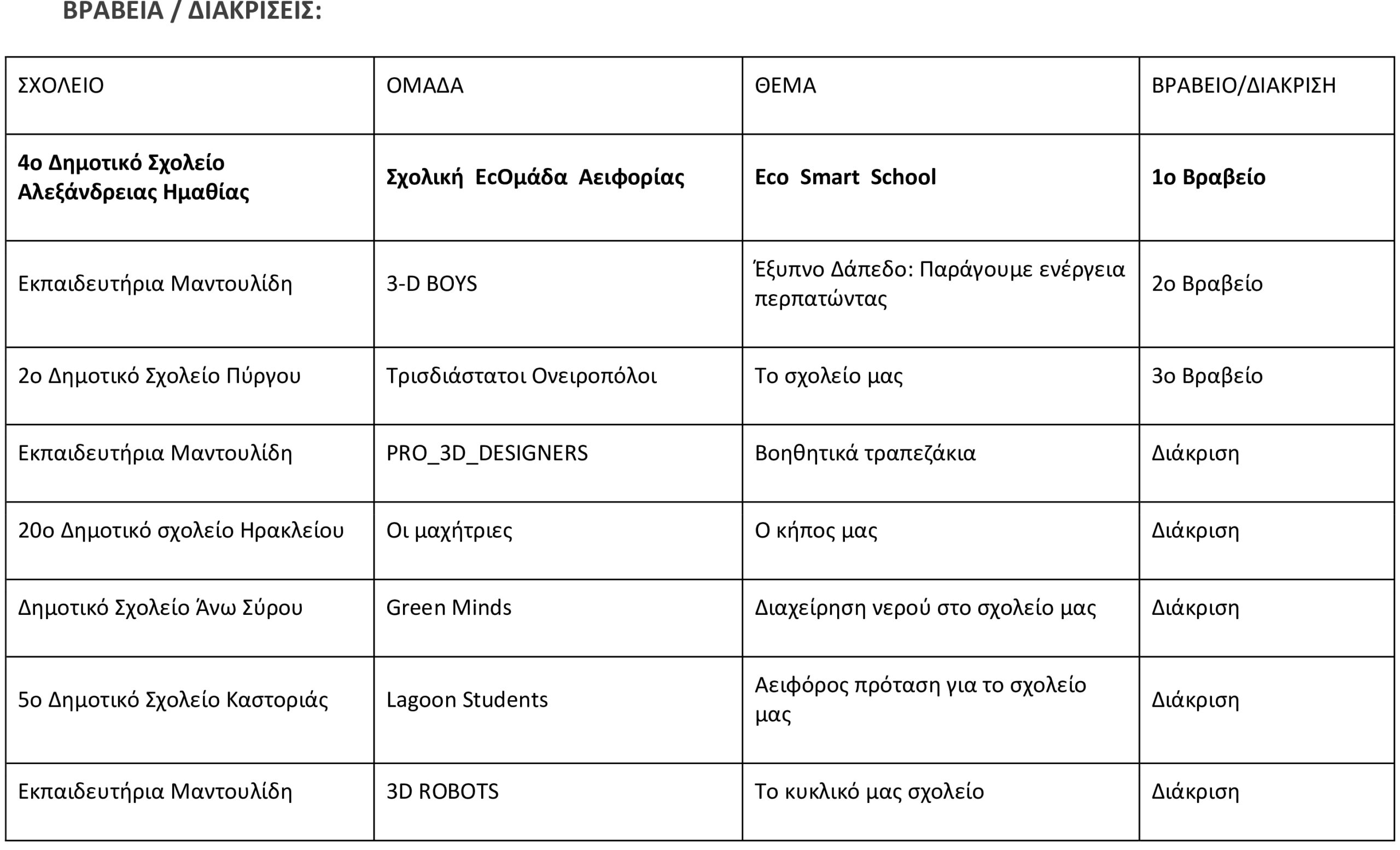 Το σχολείο μας απέσπασε το Πρώτο Βραβείο στην κατηγορία Πρωτοβάθμιας Εκπαίδευσης στον 7ο Πανελλήνιο Μαθητικό Διαγωνισμό Τρισδιάστατης Σχεδίασης και Εκτύπωσης (ST3dM 2025), που διοργανώθηκε από το Αριστοτέλειο Πανεπιστήμιο Θεσσαλονίκης (ΑΠΘ).