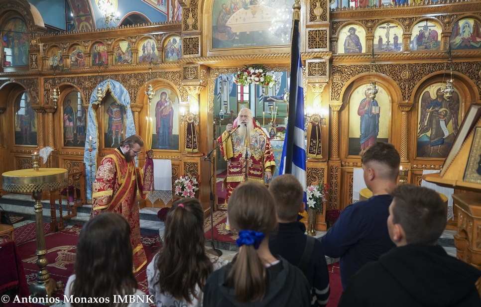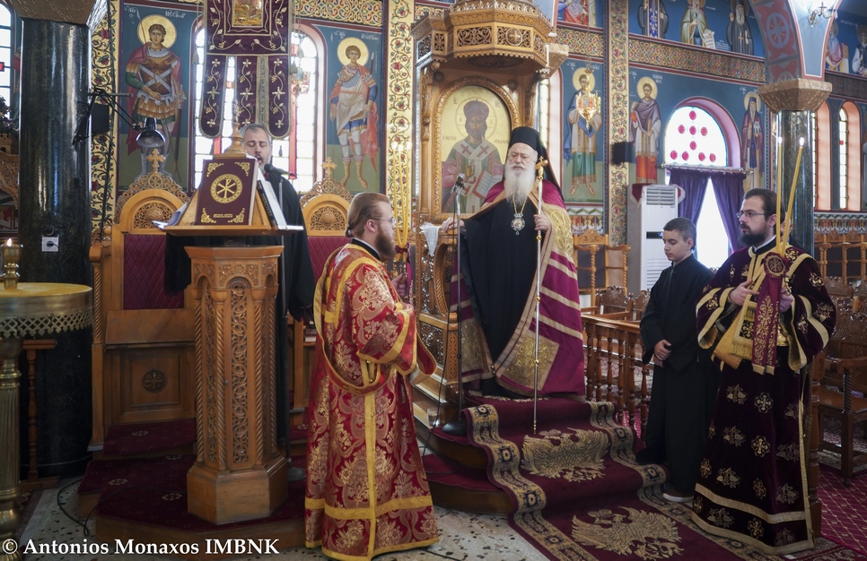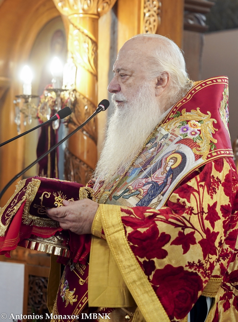 Ο Ποιμενάρχης μας κ. Παντελεήμων κηρύττοντας τον θείο λόγο ανέφερε χαρακτηριστικά: «Ὁ Θεός τοῦ Δημητρίου βοήθει μοι». Ἑόρτασε χθές ἡ Ἁγία μας Ἐκκλησία καί πανηγύρισε ἰδιαιτέρως ἡ ἐνορία σας τή μνήμη τοῦ μεγάλου ἁγίου της, τή μνήμη τοῦ ἁγίου μεγαλομάρτυρος Δημητρίου τοῦ μυροβλύτου. Ἀλλά ὅπως, κατά τήν παλαιά παράδοση, ἡ τιμή τῆς μνήμης τοῦ ἁγίου Δημητρίου ἀρχίζει πολλές ἡμέρες πρίν ἀπό τήν ἑορτή τοῦ ἁγίου, ἔτσι συνεχίζεται καί μετά ἀπό αὐτήν, καθώς σήμερα τιμοῦμε ἕναν νεαρό μαθητή τοῦ ἁγίου Δημητρίου καί συναθλητή του, τιμοῦμε τόν ἅγιο μεγαλομάρτυρα Νέστορα.