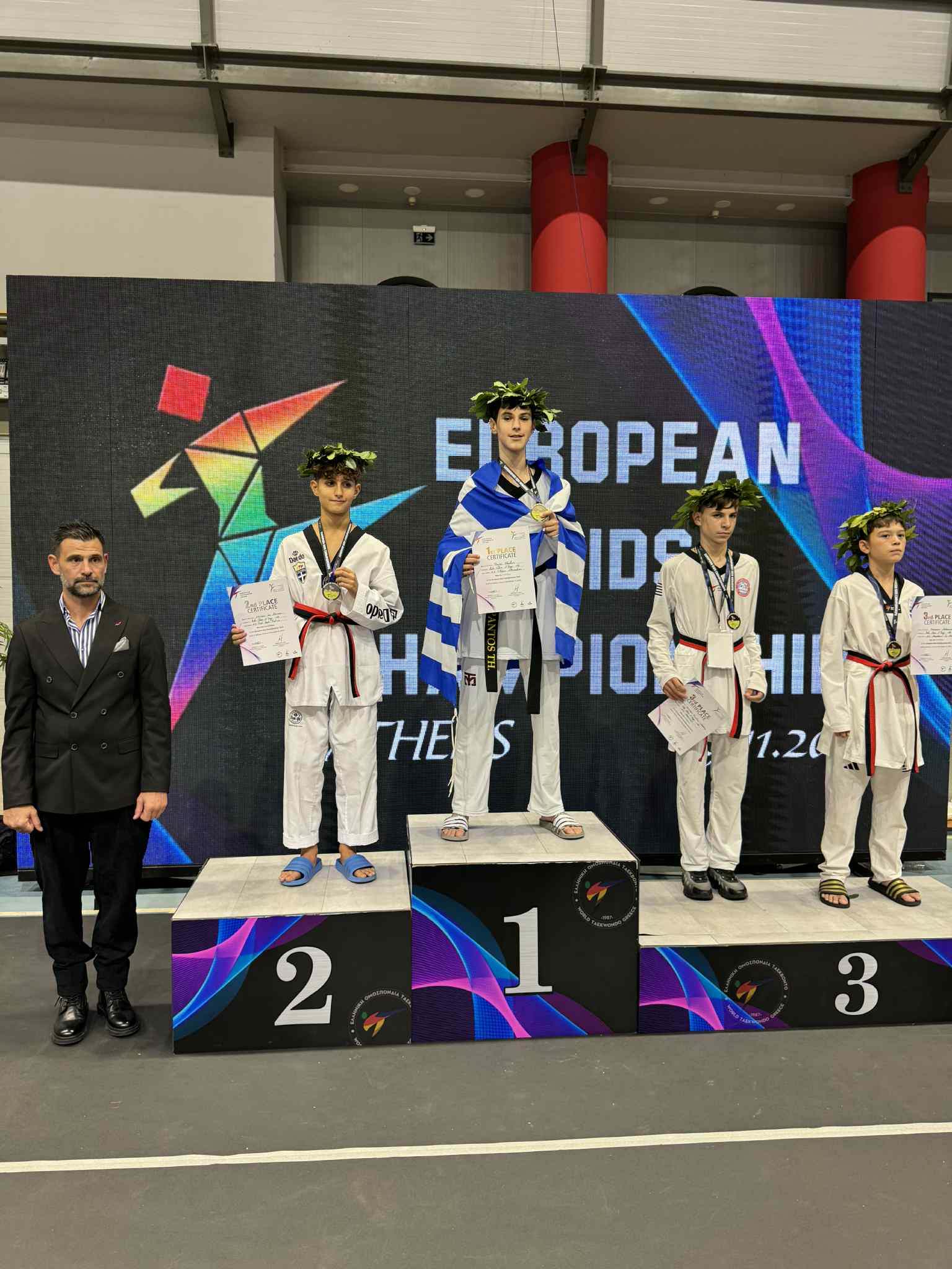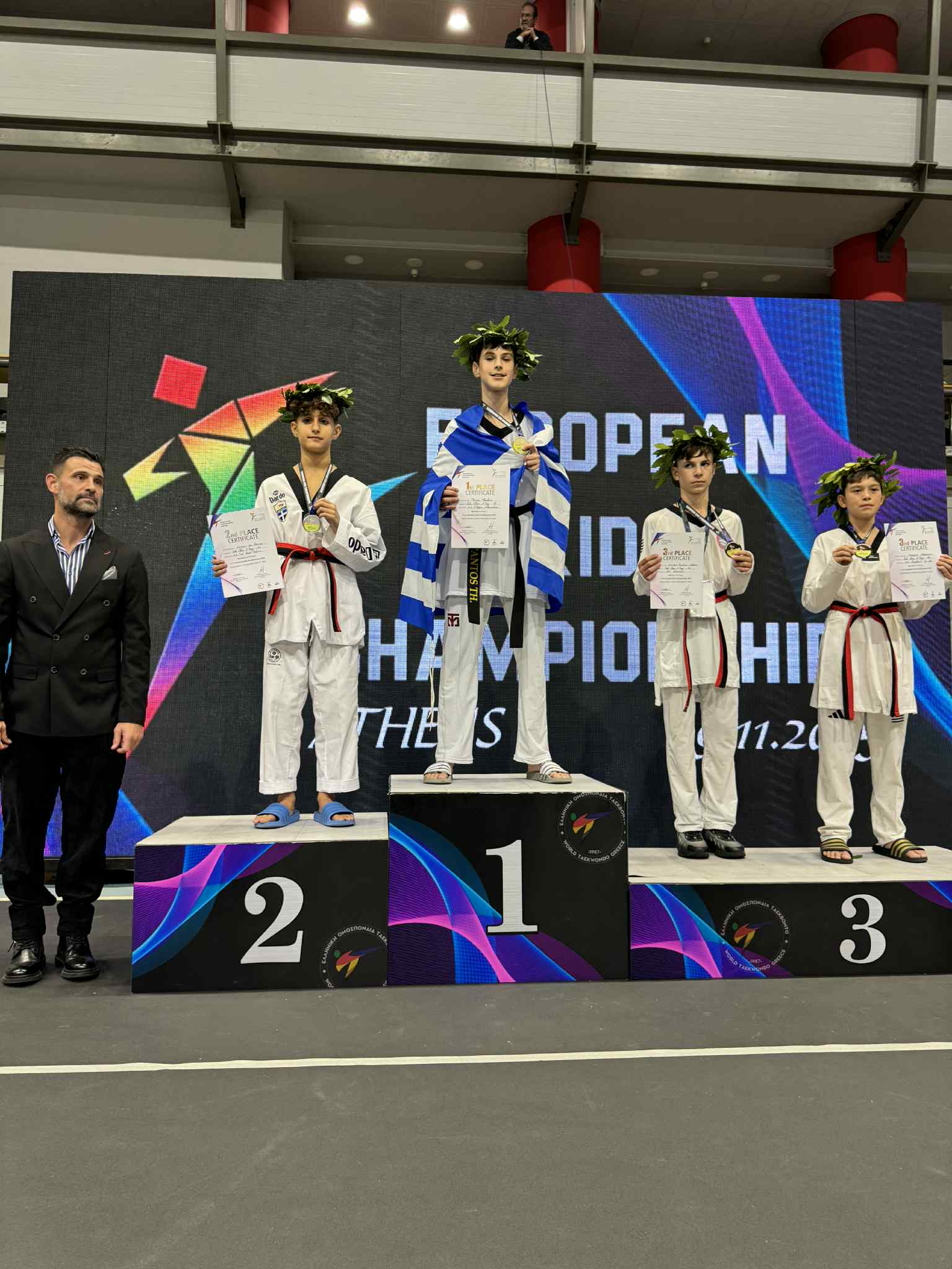 Έπειτα από τέσσερις αγώνες ο αθλητής ανέβηκε στο ψηλότερο σκαλί του βάθρου κρατώντας την Ελληνική σημαία και ακούγοντας τον Εθνικό μας Ύμνο.