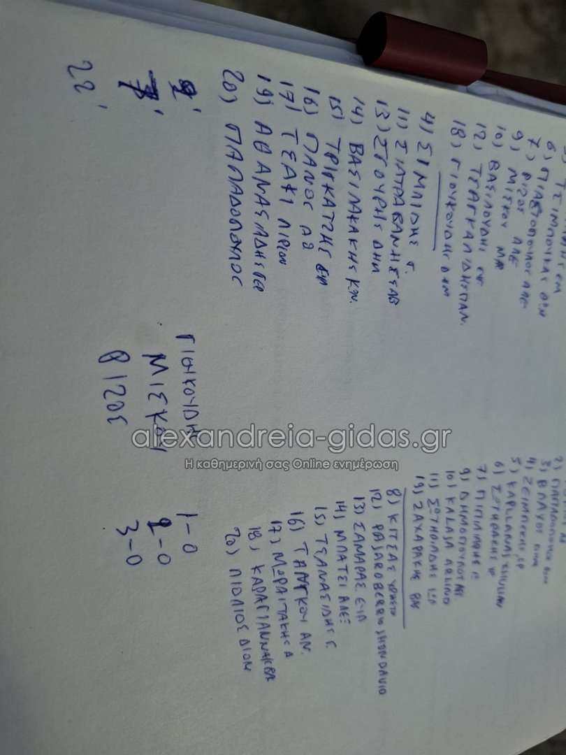 Α.Ε. Αλεξάνδρειας (Γαλτσίδης): Τόλιος, Παπαδόπουλος (Κίτσας 46′), Βλάχος, Ζεϊμπέκης, Καπλανάι (Παχάρο 46′), Σωτηράκης, Πιπιλιάρης, Δημόπουλος (Μωραϊτάκης Α. 46), Καλάια, Σωτηριάδης, Ζαχαράκης (Καραγιάννης 46′).