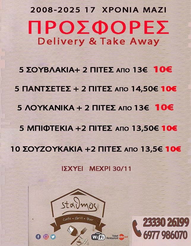 Το ΣΤΑΘΜΟΣ cafe–grill–bar γιορτάζει και μας κερνάει super προσφορές εντός του καταστήματος αλλά και σε delivery!