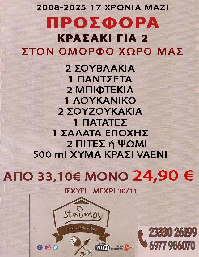Το ΣΤΑΘΜΟΣ cafe–grill–bar γιορτάζει και μας κερνάει super προσφορές εντός του καταστήματος αλλά και σε delivery!