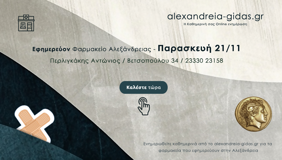 ΦΑΡΜΑΚΕΙΑ 21 Νοεμβρίου, 2025 posted by admin Share Ποιο φαρμακείο εφημερεύει σήμερα Παρασκευή στην Αλεξάνδρεια 🔊 Ακούστε το άρθρο κάνοντας κλικ Αλεξάνδρεια: (κλικ στην εικόνα παρακάτω για να καλέσετε απευθείας το φαρμακείο) Αφήστε μια απάντηση Ακύρωση απάντησηςΗ ηλ. διεύθυνση σας δεν δημοσιεύεται. Τα υποχρεωτικά πεδία σημειώνονται με *Σχόλιο * Όνομα Email Ιστότοπος Αποθήκευσε το όνομά μου, email, και τον ιστότοπο μου σε αυτόν τον πλοηγό για την επόμενη φορά που θα σχολιάσω.