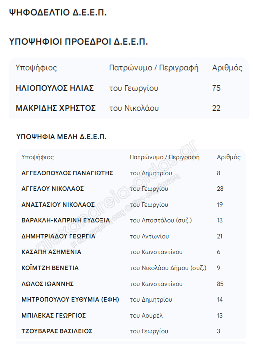Οι υποψήφιοι για την ΔΗΜ.ΤΟ Αλεξάνδρειας εκλέχθηκαν χωρίς κάλπη γιατί υπήρξε ένα μόνο ψηφοδέλτιο.