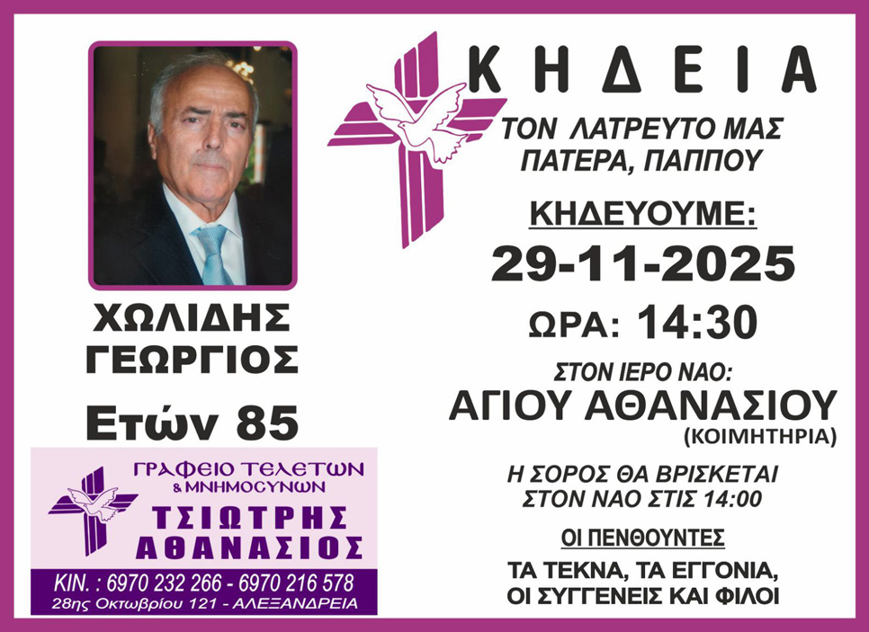“Έφυγε” από τη ζωή ο Γεώργιος Χωλίδης.