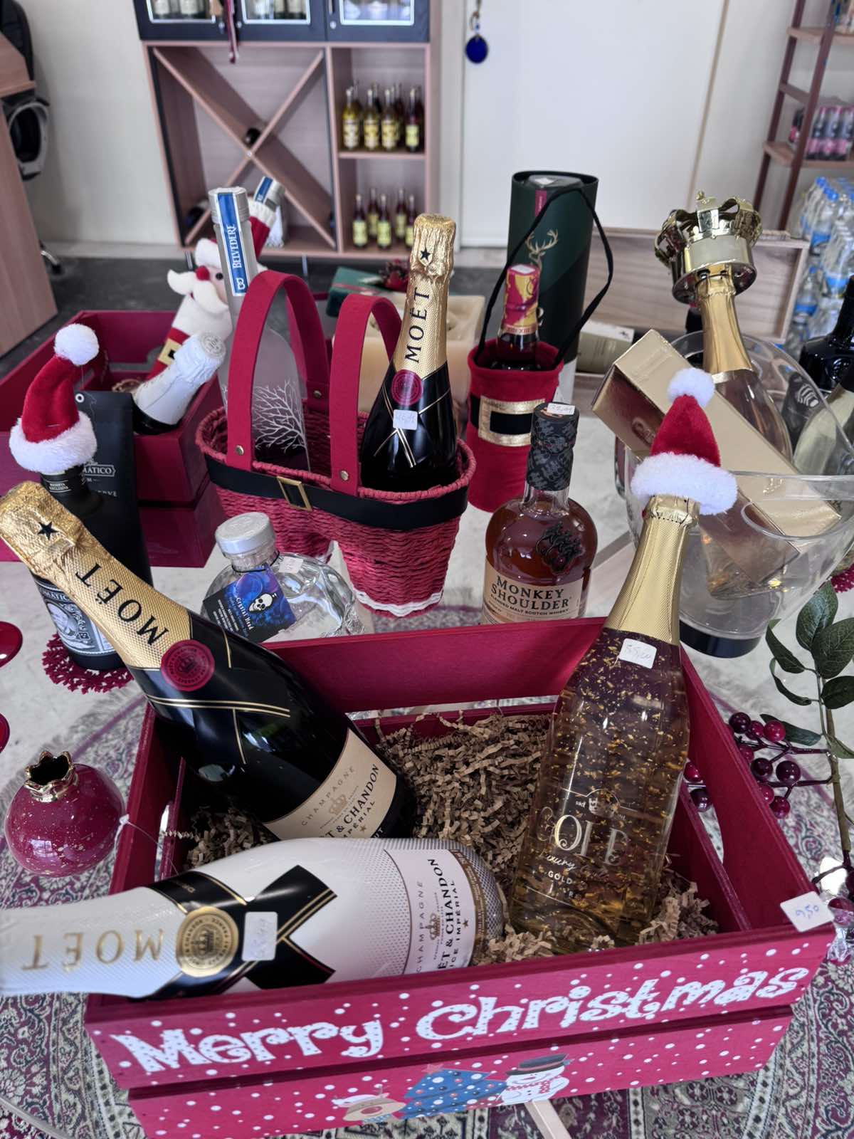 Μεγάλη ποικιλία σε κρασιά, ποτά και έτοιμα καλάθια δώρου — τέλεια για τις μέρες που έρχονται.