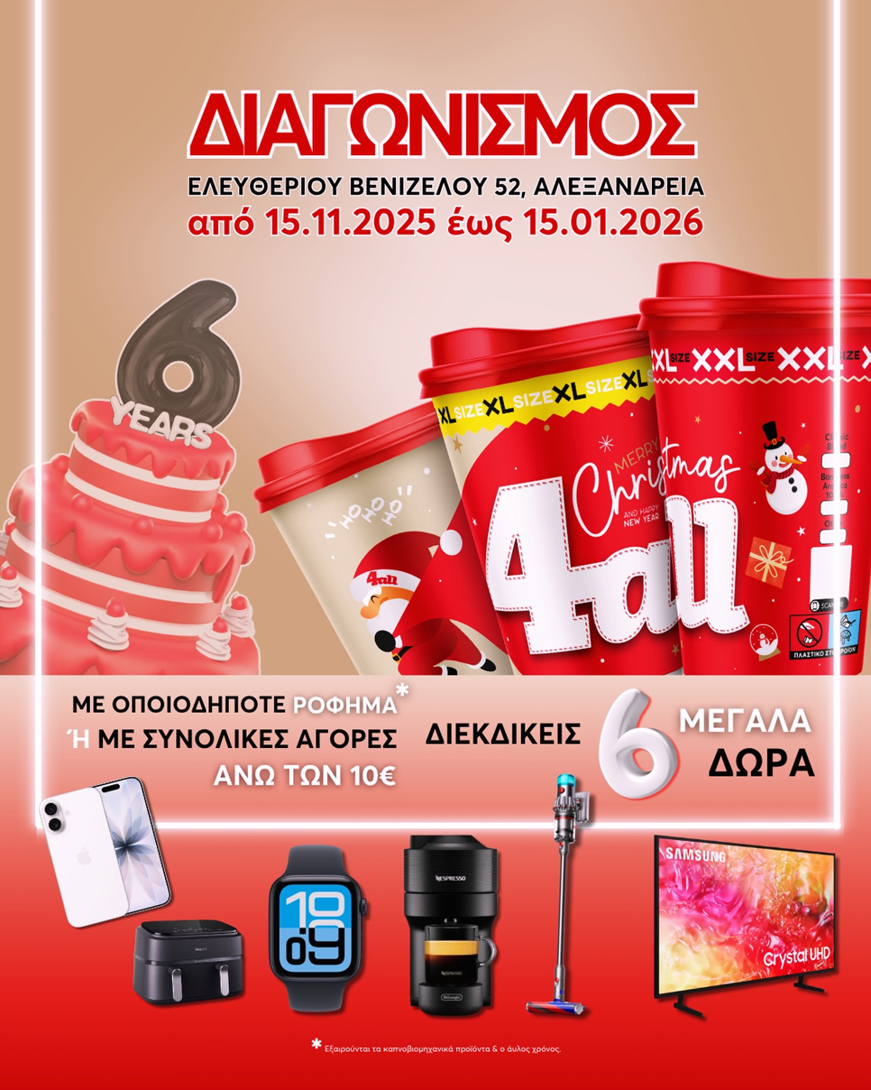 Το Κατάστημα 4all Αλεξάνδρειας κληρώνει και δίνει σε 6 τυχερούς φανταστικά Δώρα!