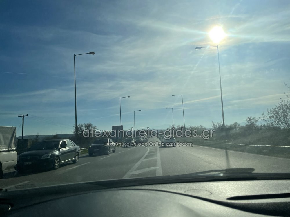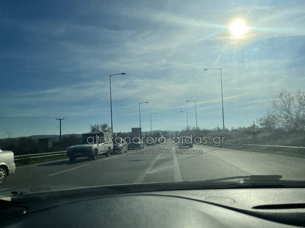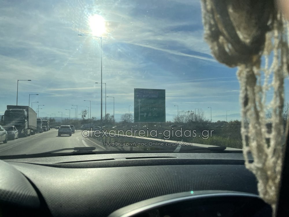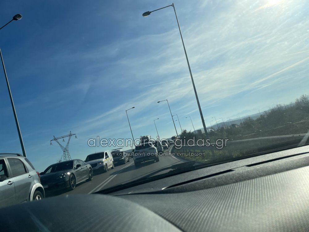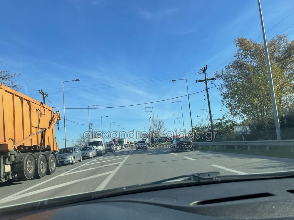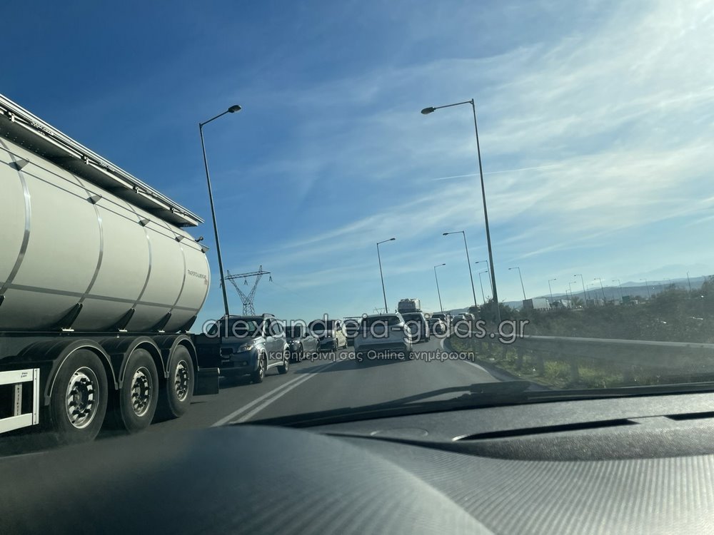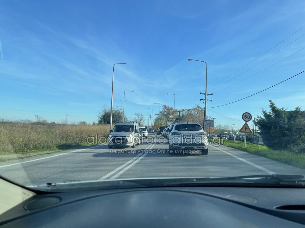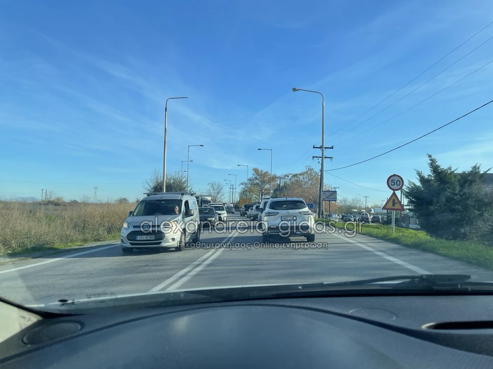 Έχουν σχηματιστεί ουρές οχημάτων που φτάνουν από το Νησέλι στην Αλεξάνδρεια.