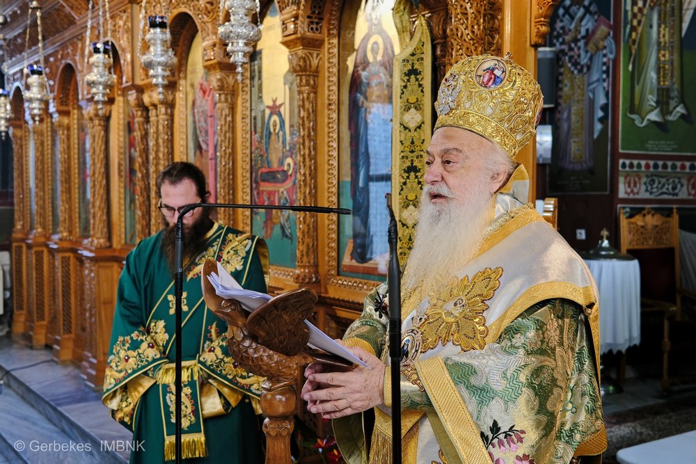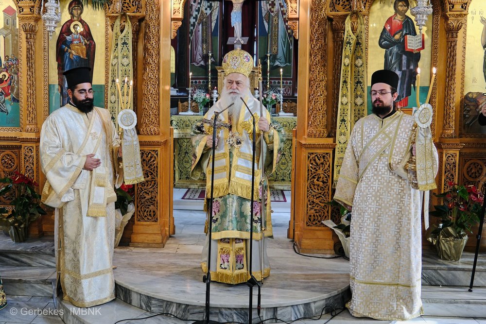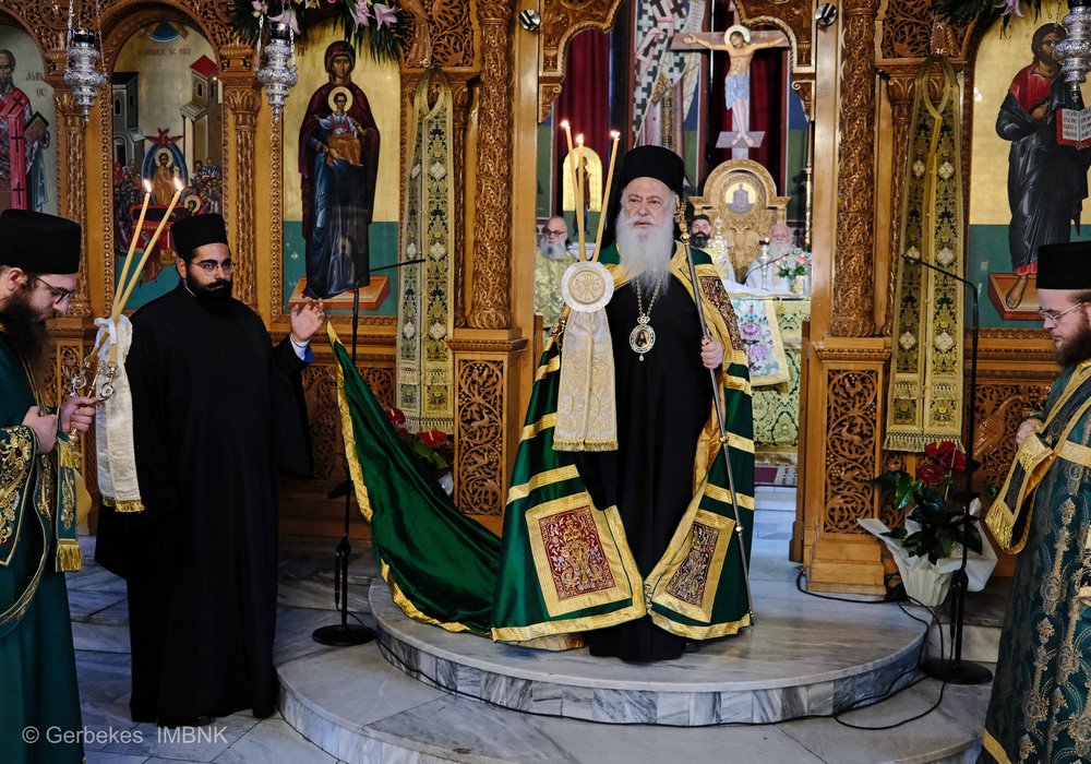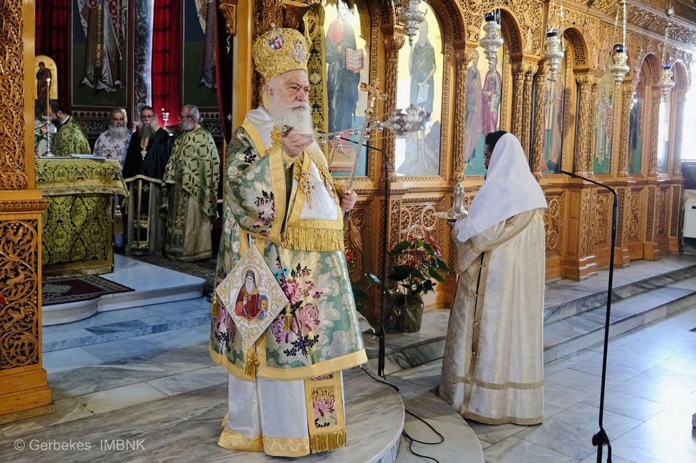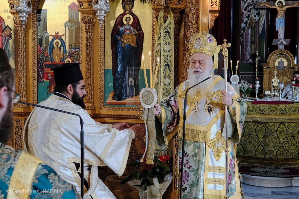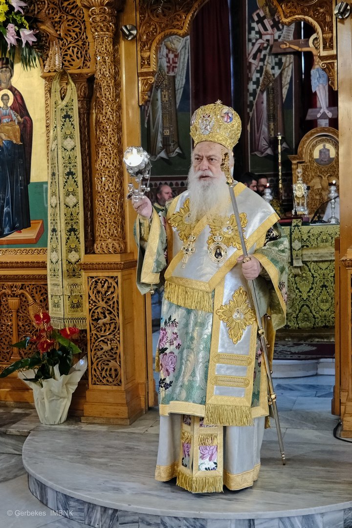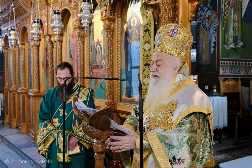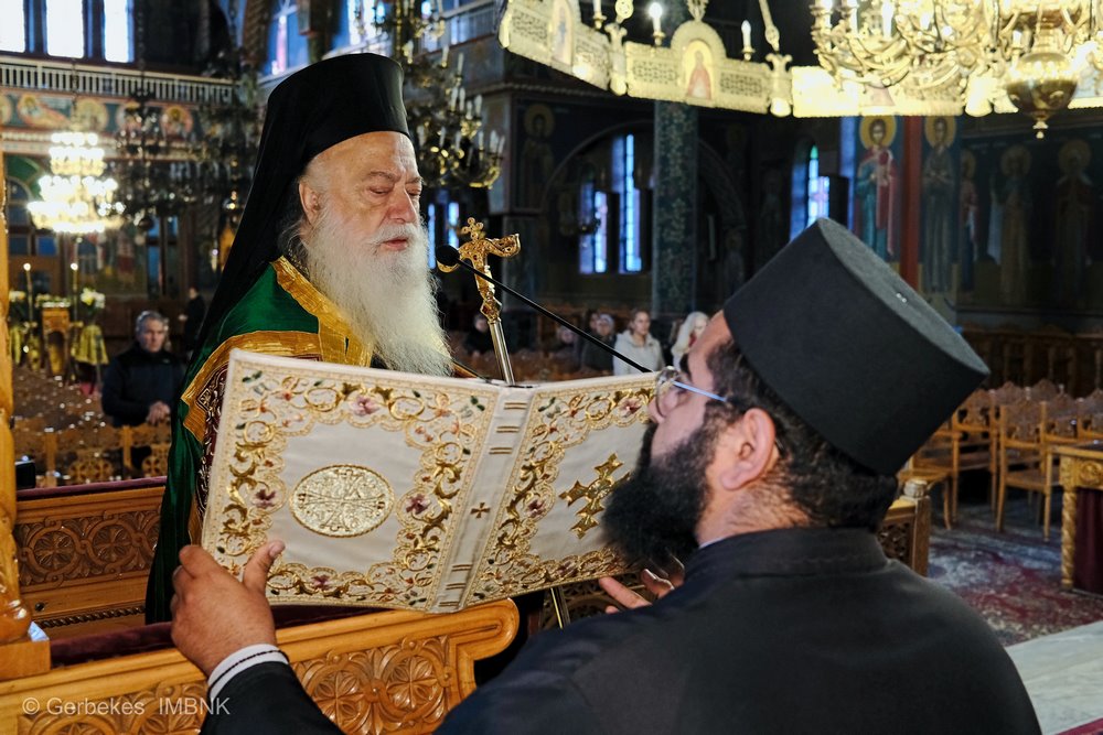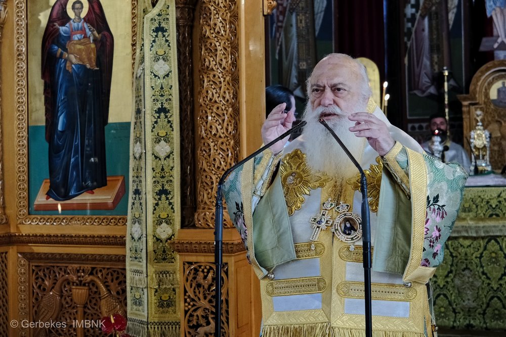 Ἀνταποκρινόμενοι καί ἐμεῖς στήν προτροπή τοῦ ἱεροῦ ὑμνογράφου ἤλθαμε σήμερα στόν ναό τῆς Παναγίας, ὅπου εὑρίσκεται καί τό παρεκκλήσιο τοῦ ἁγίου Πορφυρίου, τοῦ Καυσοκαλυβίτου, τοῦ μεγάλου αὐτοῦ συγχρόνου ἁγίου τῆς Ἐκκλησίας μας, γιά νά τιμήσουμε τή μνήμη του καί νά λάβουμε τήν εὐλογία καί τή χάρη του, προσκυνώντας ἀντί ἀποτμήματος τοῦ ἱεροῦ του λειψάνου, ἕνα μικρό φιαλίδιο πού περιέχει αἶμα τοῦ ὁσίου, τό ὁποῖο ἔχουμε τήν εὐλογία νά κατέχουμε ὡς πολύτιμο θησαυρό στήν Ἱερά μας Μητρόπολη.