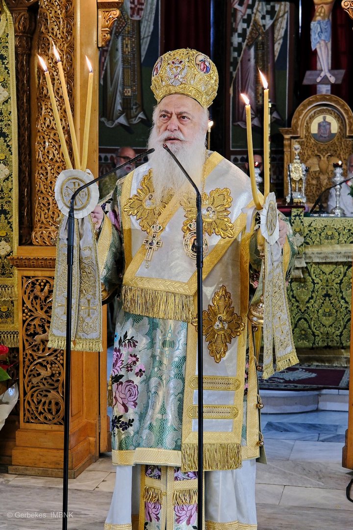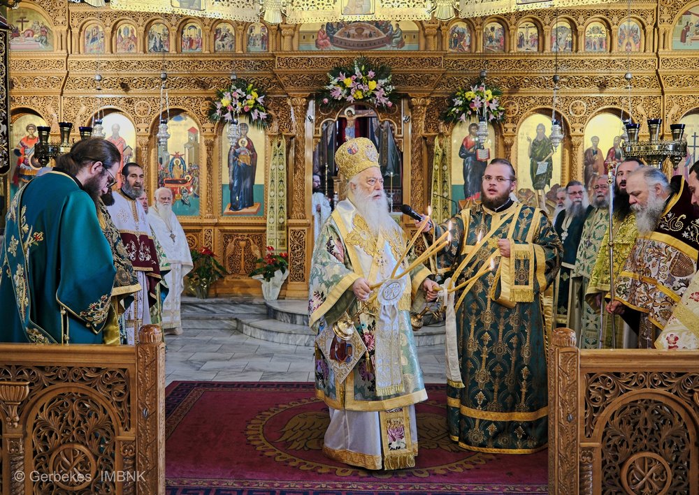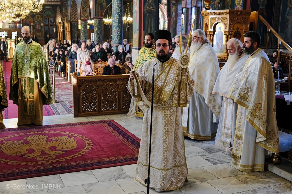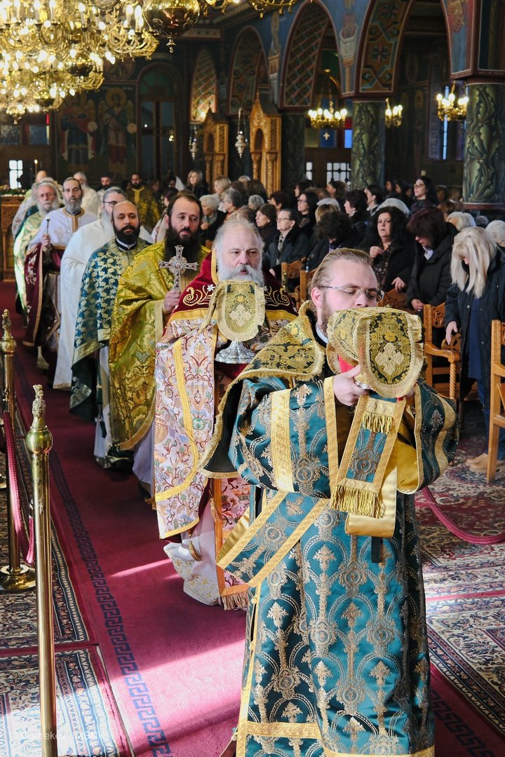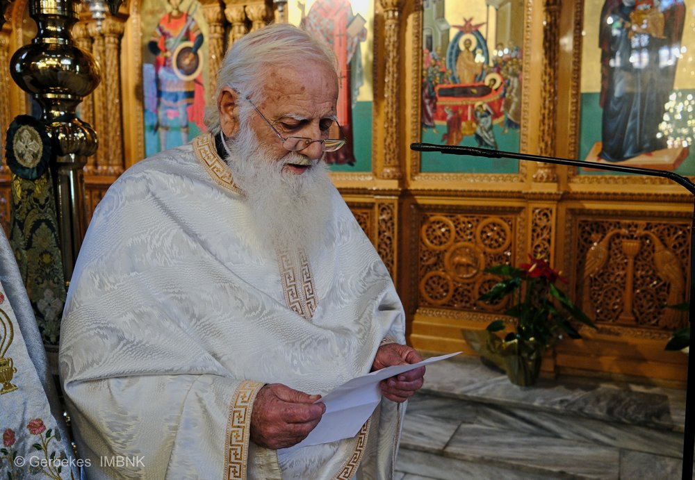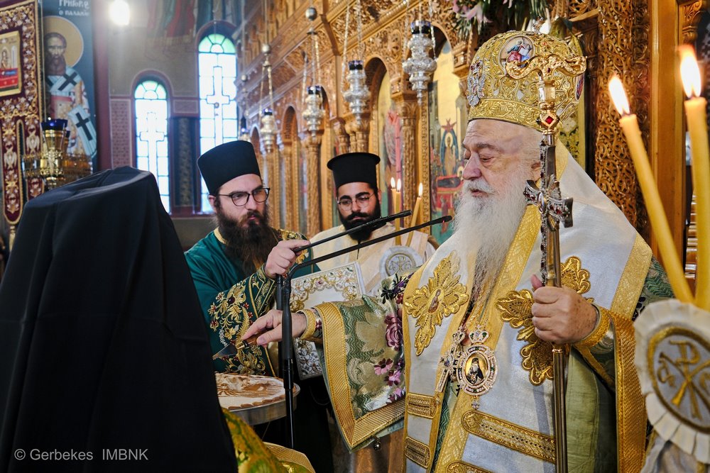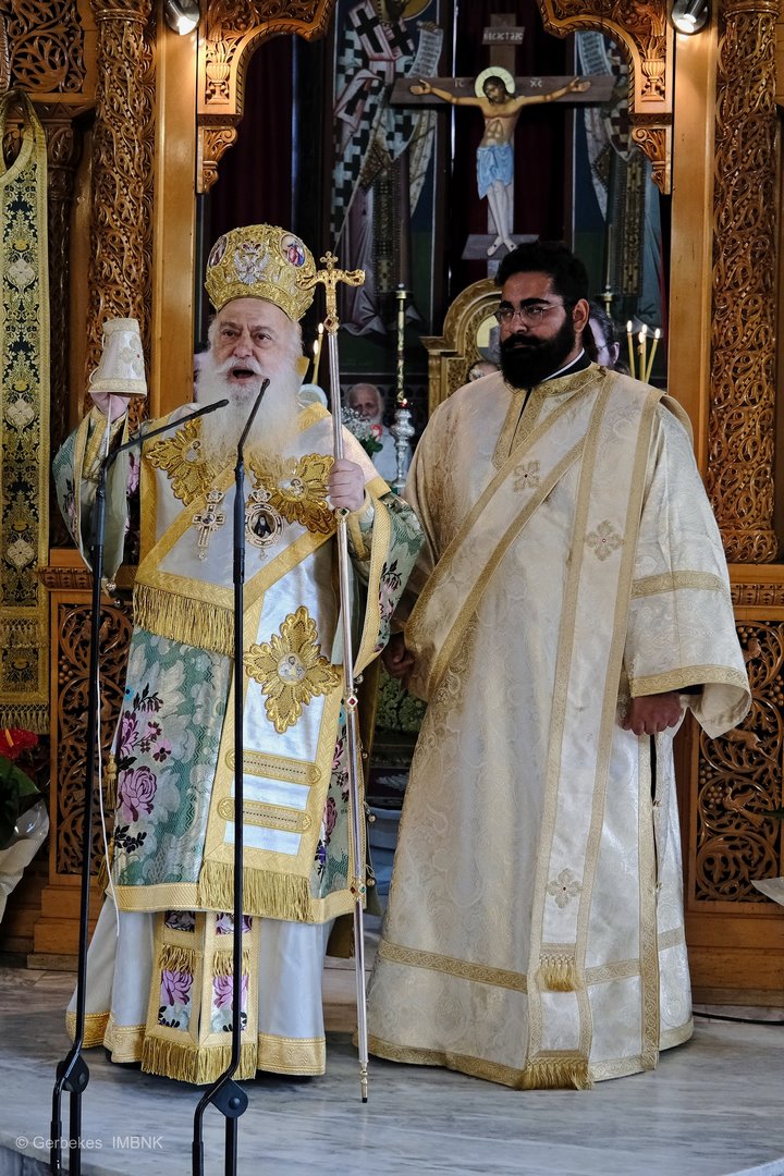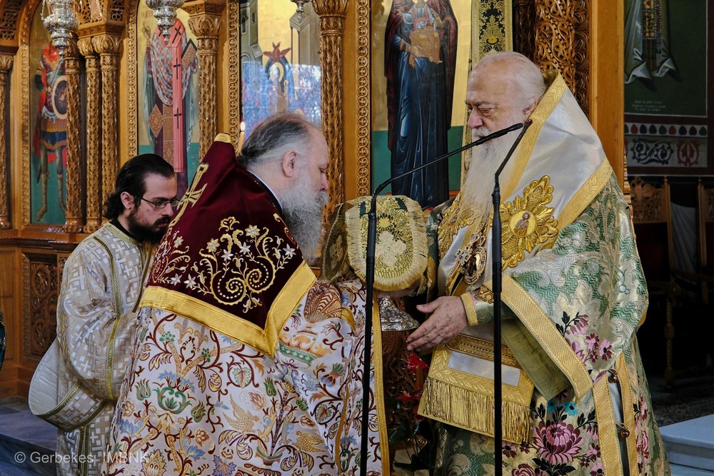 Ἀνταποκρινόμενοι καί ἐμεῖς στήν προτροπή τοῦ ἱεροῦ ὑμνογράφου ἤλθαμε σήμερα στόν ναό τῆς Παναγίας, ὅπου εὑρίσκεται καί τό παρεκκλήσιο τοῦ ἁγίου Πορφυρίου, τοῦ Καυσοκαλυβίτου, τοῦ μεγάλου αὐτοῦ συγχρόνου ἁγίου τῆς Ἐκκλησίας μας, γιά νά τιμήσουμε τή μνήμη του καί νά λάβουμε τήν εὐλογία καί τή χάρη του, προσκυνώντας ἀντί ἀποτμήματος τοῦ ἱεροῦ του λειψάνου, ἕνα μικρό φιαλίδιο πού περιέχει αἶμα τοῦ ὁσίου, τό ὁποῖο ἔχουμε τήν εὐλογία νά κατέχουμε ὡς πολύτιμο θησαυρό στήν Ἱερά μας Μητρόπολη.