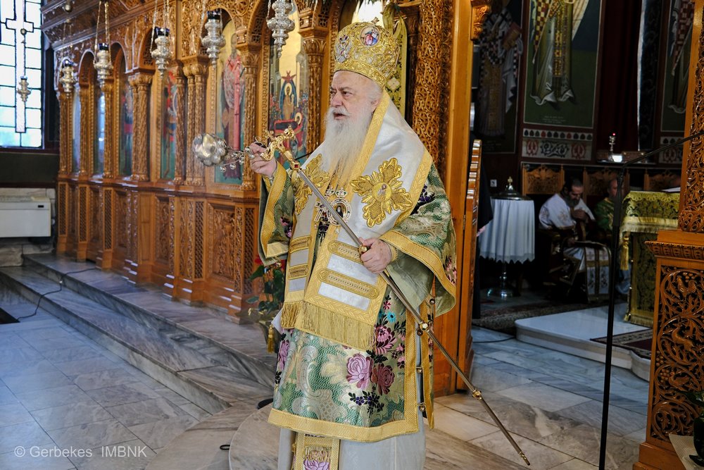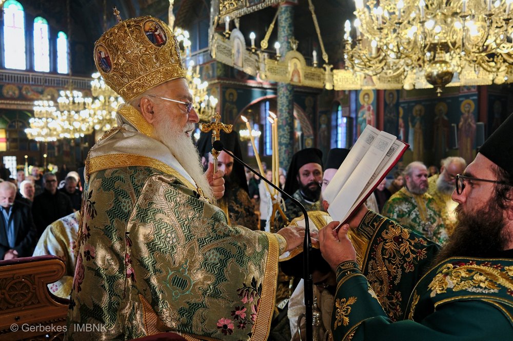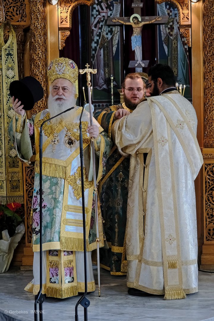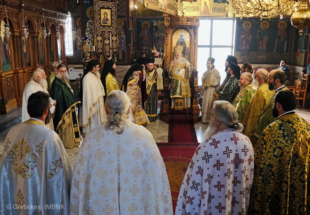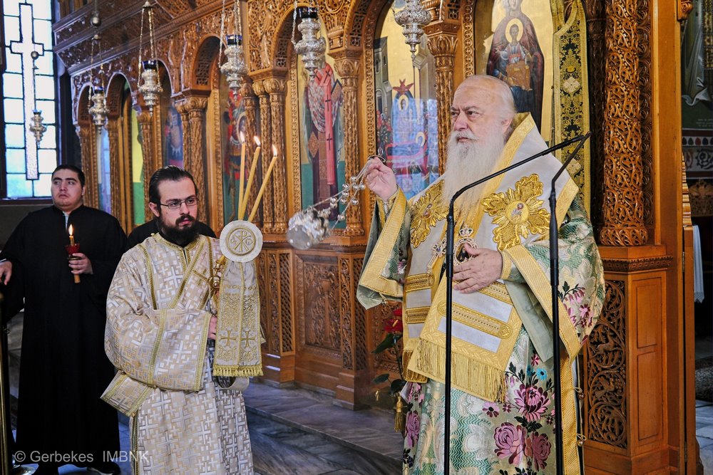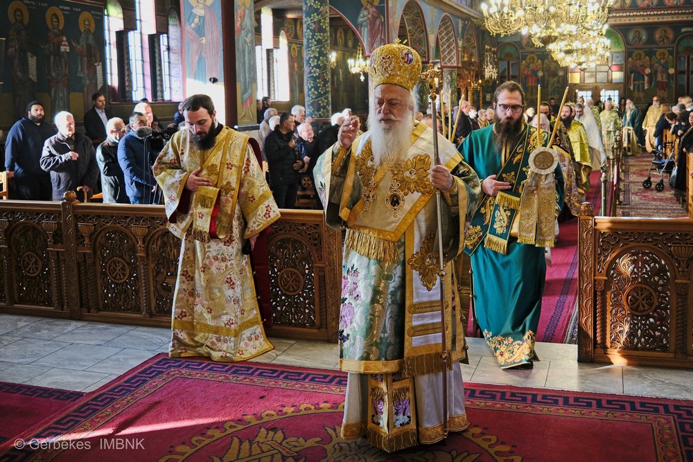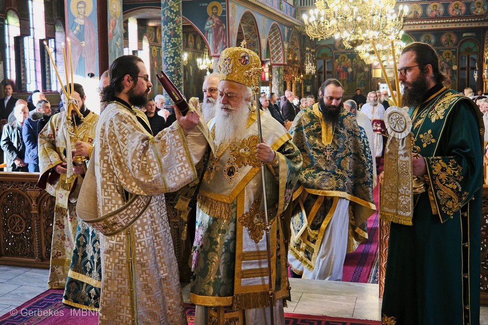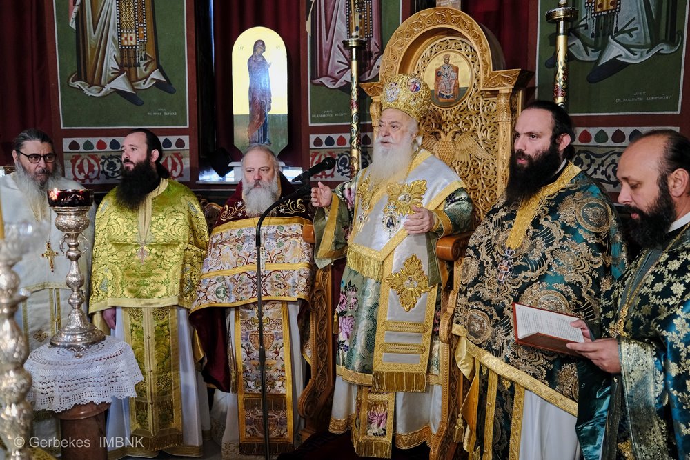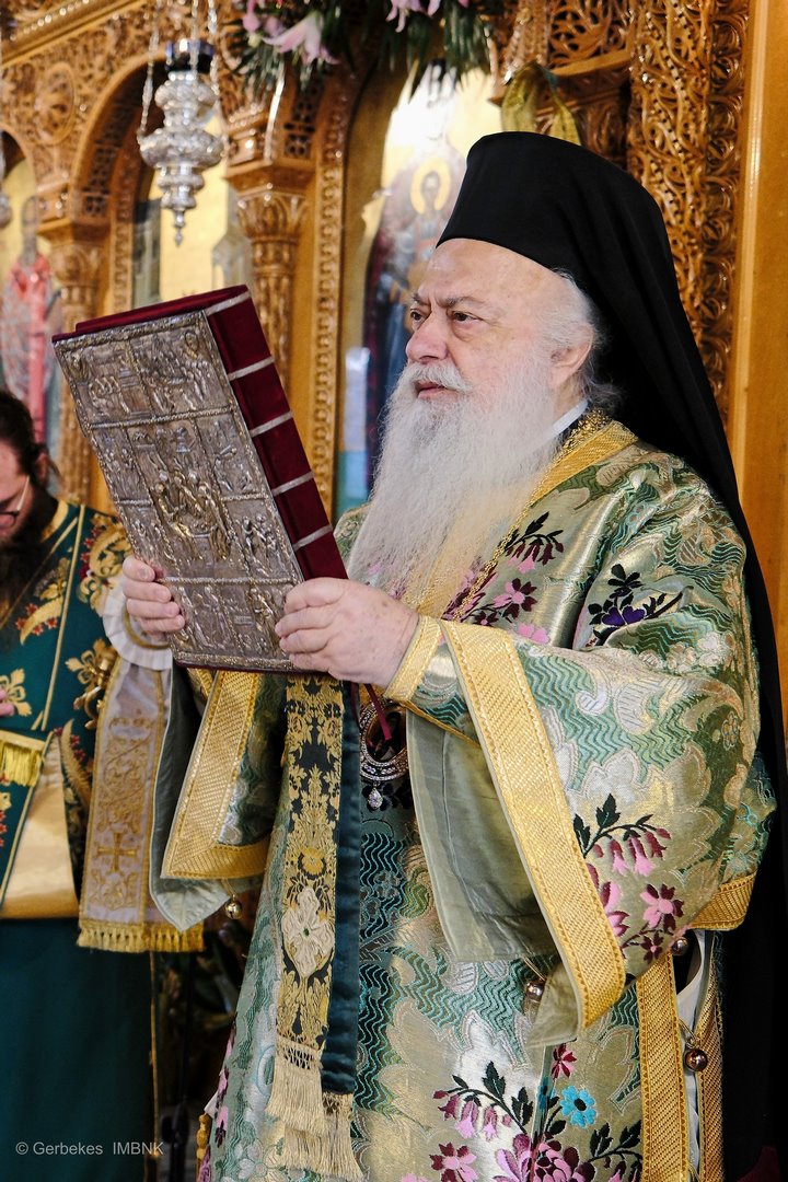 Ἀνταποκρινόμενοι καί ἐμεῖς στήν προτροπή τοῦ ἱεροῦ ὑμνογράφου ἤλθαμε σήμερα στόν ναό τῆς Παναγίας, ὅπου εὑρίσκεται καί τό παρεκκλήσιο τοῦ ἁγίου Πορφυρίου, τοῦ Καυσοκαλυβίτου, τοῦ μεγάλου αὐτοῦ συγχρόνου ἁγίου τῆς Ἐκκλησίας μας, γιά νά τιμήσουμε τή μνήμη του καί νά λάβουμε τήν εὐλογία καί τή χάρη του, προσκυνώντας ἀντί ἀποτμήματος τοῦ ἱεροῦ του λειψάνου, ἕνα μικρό φιαλίδιο πού περιέχει αἶμα τοῦ ὁσίου, τό ὁποῖο ἔχουμε τήν εὐλογία νά κατέχουμε ὡς πολύτιμο θησαυρό στήν Ἱερά μας Μητρόπολη.