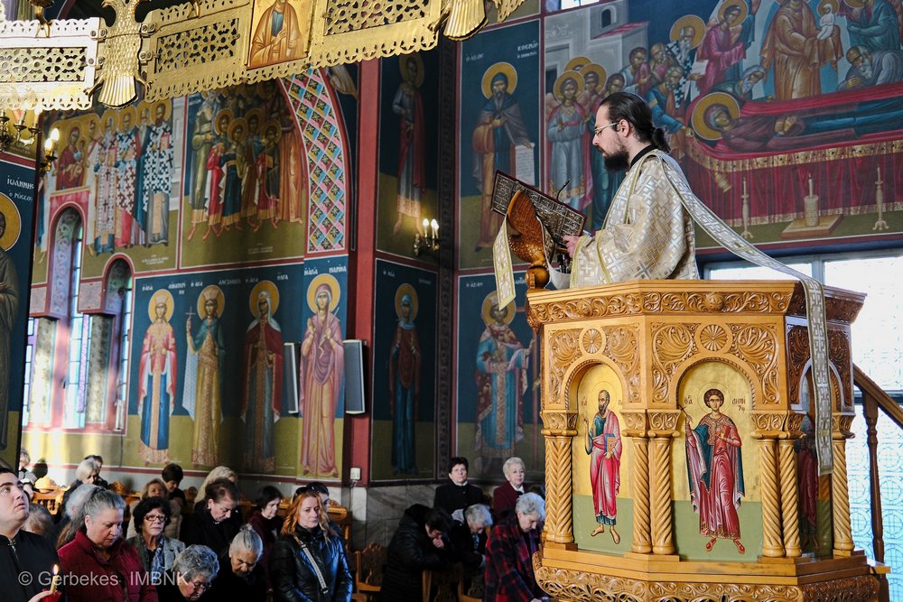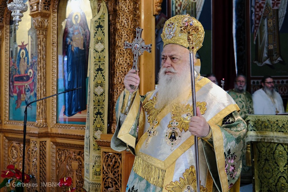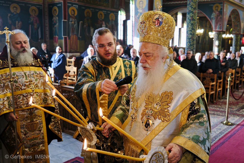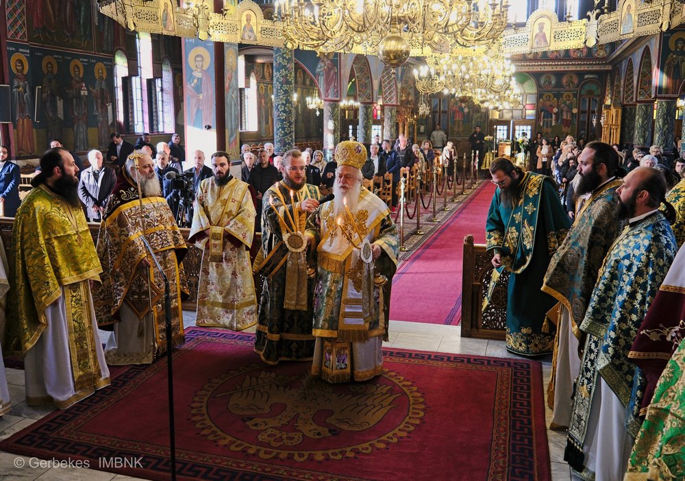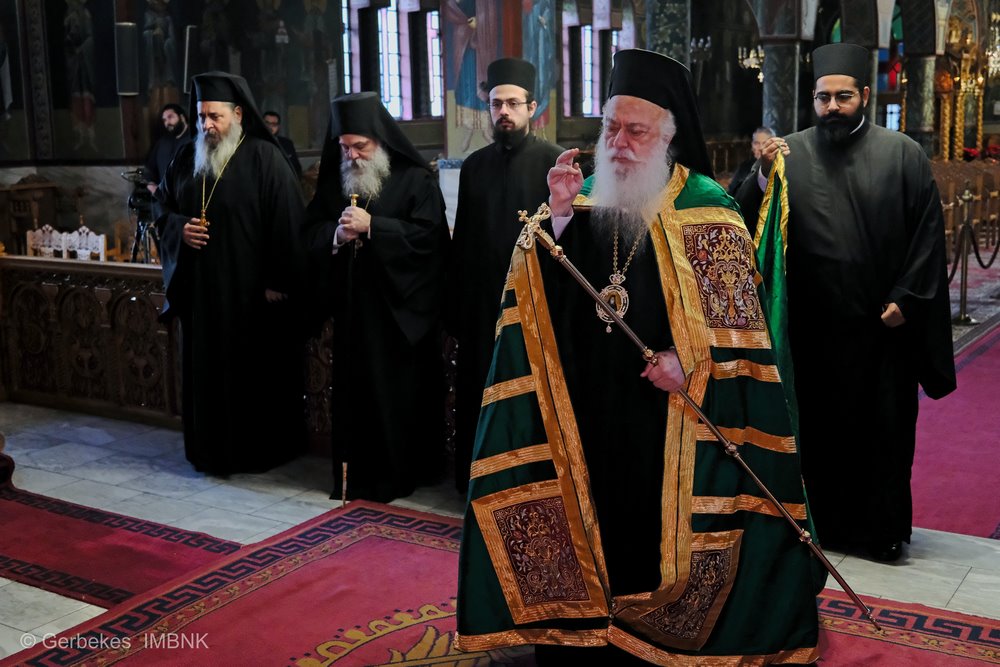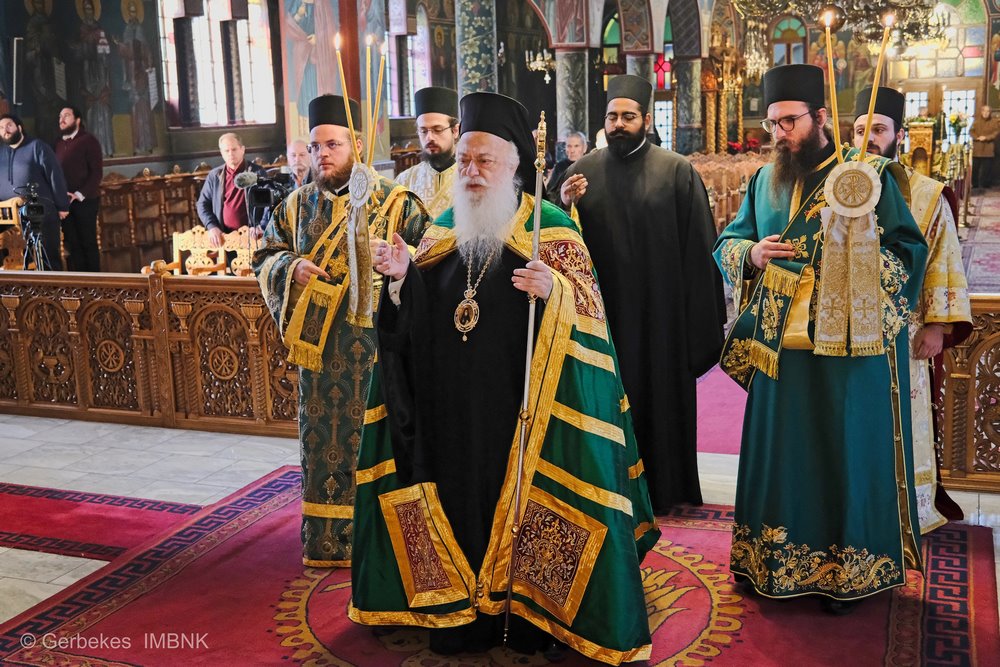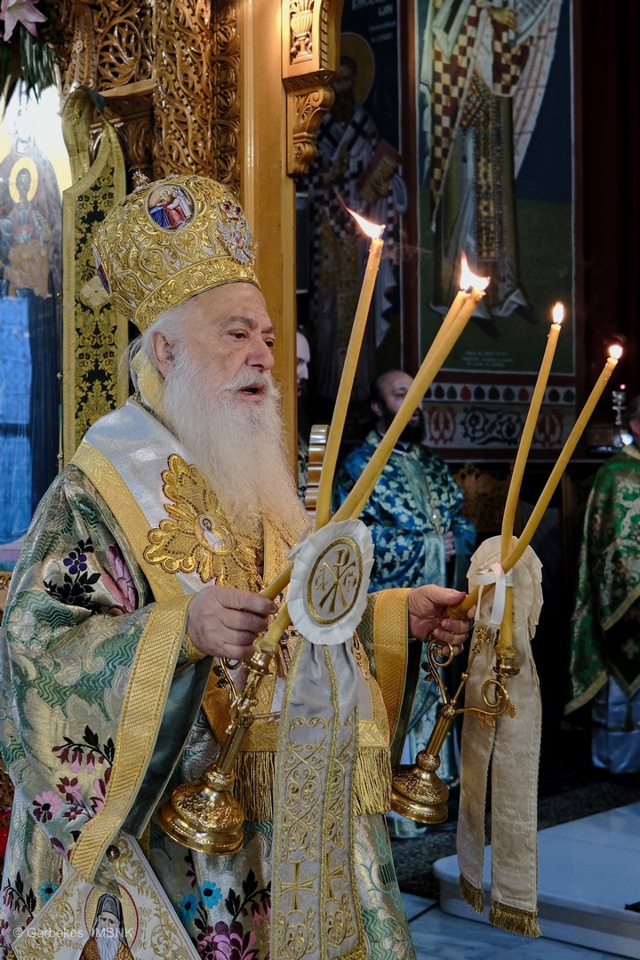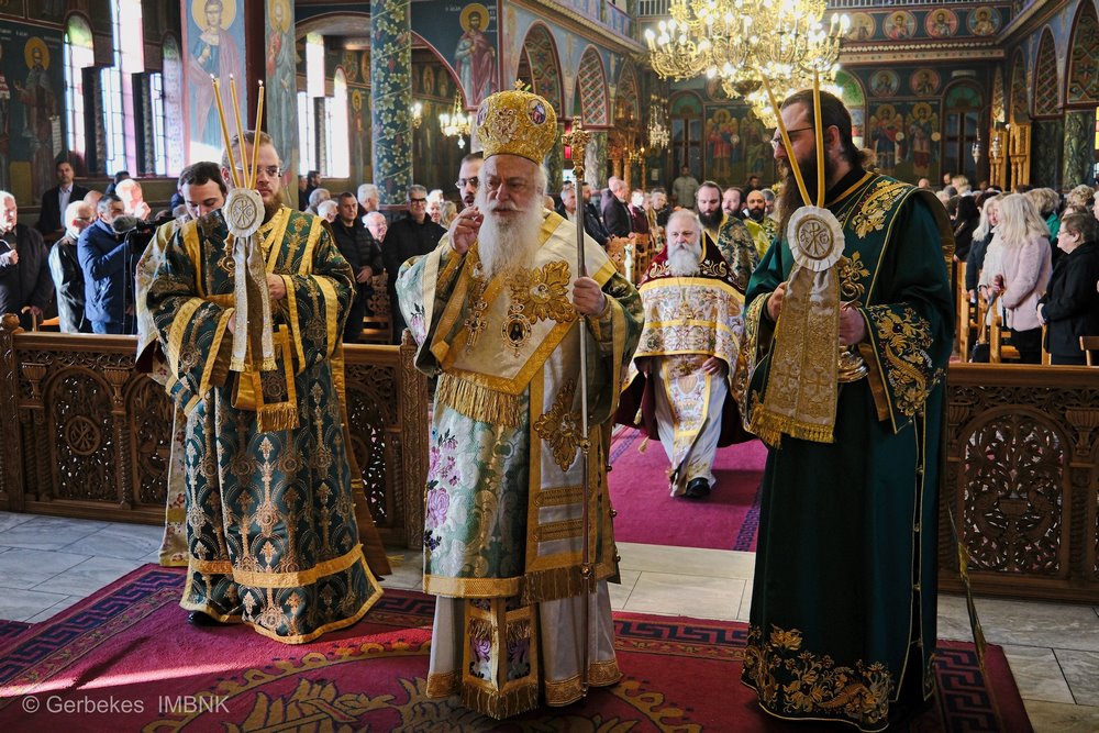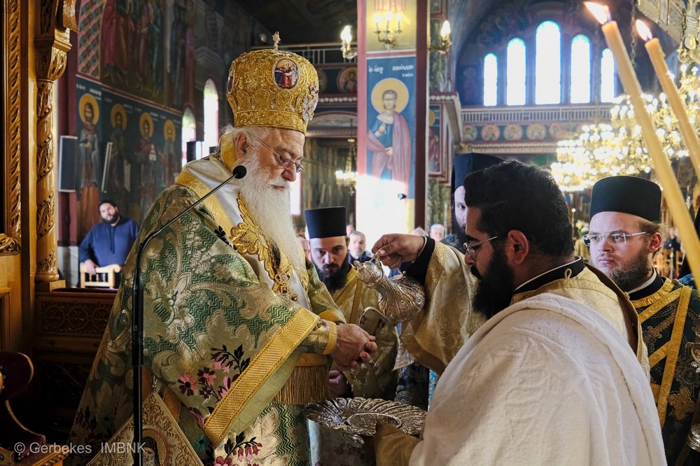 Ἀνταποκρινόμενοι καί ἐμεῖς στήν προτροπή τοῦ ἱεροῦ ὑμνογράφου ἤλθαμε σήμερα στόν ναό τῆς Παναγίας, ὅπου εὑρίσκεται καί τό παρεκκλήσιο τοῦ ἁγίου Πορφυρίου, τοῦ Καυσοκαλυβίτου, τοῦ μεγάλου αὐτοῦ συγχρόνου ἁγίου τῆς Ἐκκλησίας μας, γιά νά τιμήσουμε τή μνήμη του καί νά λάβουμε τήν εὐλογία καί τή χάρη του, προσκυνώντας ἀντί ἀποτμήματος τοῦ ἱεροῦ του λειψάνου, ἕνα μικρό φιαλίδιο πού περιέχει αἶμα τοῦ ὁσίου, τό ὁποῖο ἔχουμε τήν εὐλογία νά κατέχουμε ὡς πολύτιμο θησαυρό στήν Ἱερά μας Μητρόπολη.