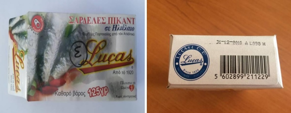 Ο Ε.Φ.Ε.Τ. και συγκεκριμένα η Περιφερειακή Διεύθυνση Αττικής, κατά τη διενέργεια ελέγχων και σε συνεργασία με τη Χημική Υπηρεσία Πειραιά – Τμήμα Α΄, διαπίστωσε ότι το προϊόν με την εμπορική επωνυμία «Lucas σαρδέλες πικάντικες σε ηλιέλαιο», προέλευσης Πορτογαλίας, καθαρού βάρους 125g, με ανάλωση κατά προτίμηση πριν από 31/12/2018 και αριθμό παρτίδας ΑL098H, το οποίο εισάγεται από την εταιρεία «Provinco A.E.» που βρίσκεται στη Ν. Κηφισιά, περιείχε την βιοτοξίνη ισταμίνη, σε τιμή που υπερέβαινε το ανώτατο όριο.