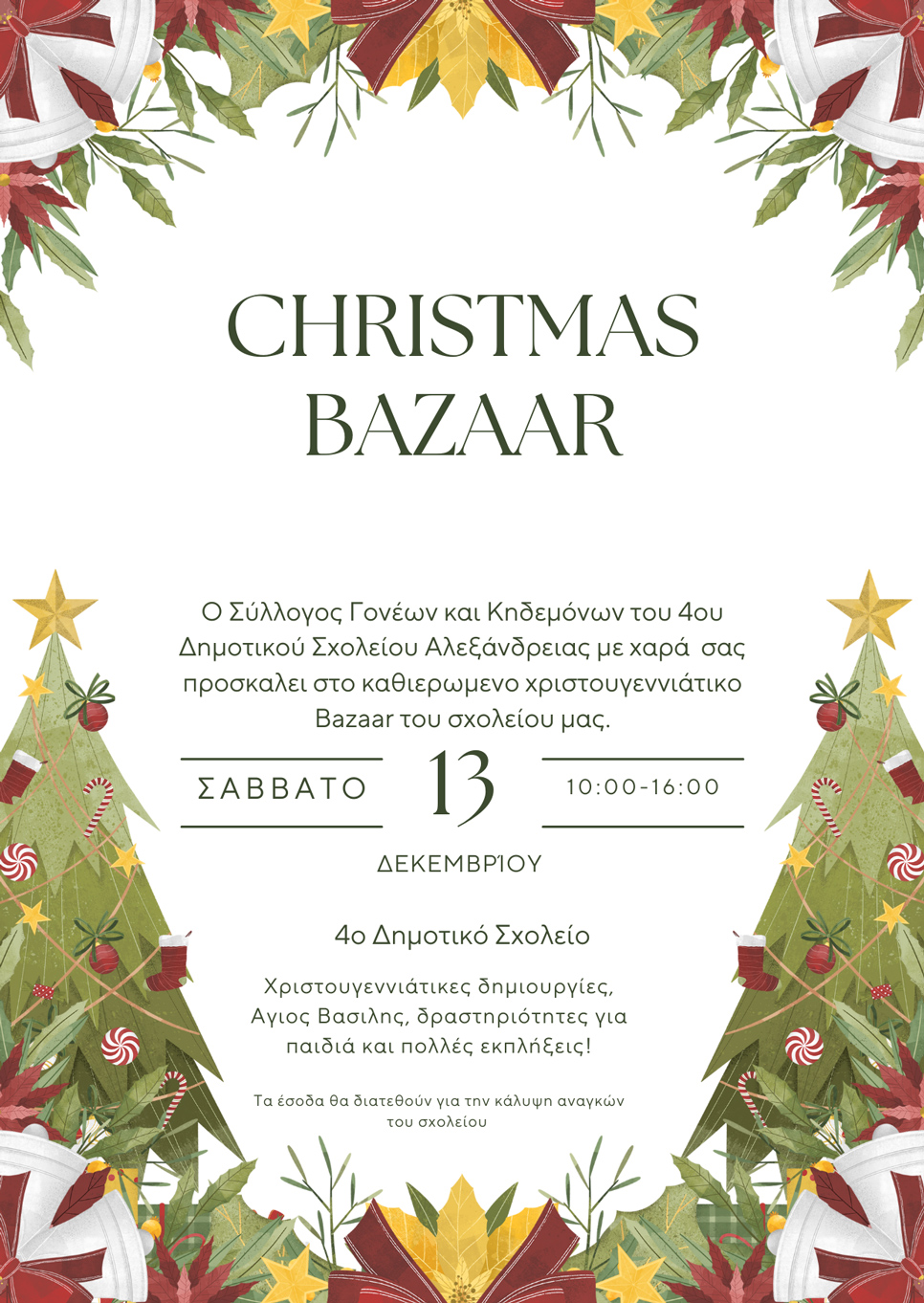 Στο Χριστουγεννιάτικο Bazzar του στον χώρο του σχολείου το Σάββατο 13/12, 10:00-16:00.