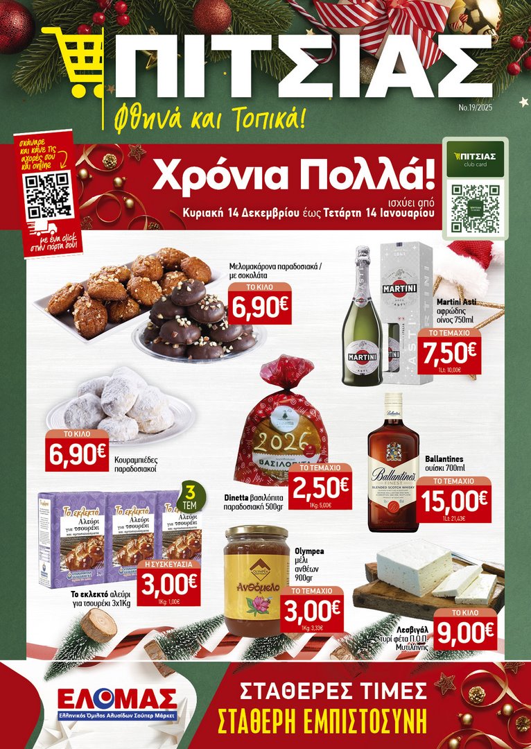 Από την Κυριακή 14 Δεκεμβρίου 2025 ξεκινούν οι ολοκαίνουριες γιορτινές προσφορές του σούπερ μάρκετ με νέο φυλλάδιο.