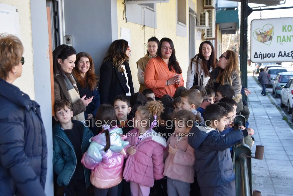 Στον χώρο τους υποδέχτηκαν η αντιδήμαρχος Ελένη Λαφαζάνη και το προσωπικό του Κοινωνικού Παντοπωλείου, με την κυρία Λαφαζάνη να προσκαλεί τους μικρούς μαθητές στην εκδήλωση με τον Άγιο Βασίλη το βράδυ.