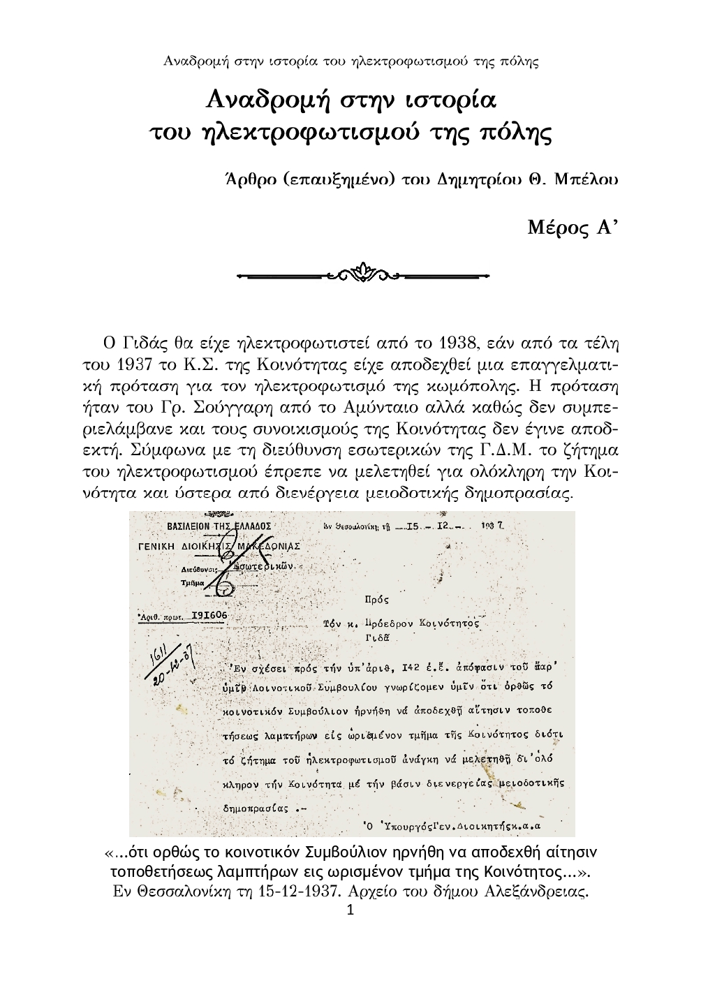 ΤΟΠΙΚΑ 16 Δεκεμβρίου, 2025 posted by admin Share Αναδρομή στην ιστορία του ηλεκτροφωτισμού της πόλης / Γράφει ο Δημήτρης Θ. Μπέλος Γράφει ο Δημήτρης Θ. Μπέλος Αφήστε μια απάντηση Ακύρωση απάντησηςΗ ηλ. διεύθυνση σας δεν δημοσιεύεται. Τα υποχρεωτικά πεδία σημειώνονται με *Σχόλιο * Όνομα Email Ιστότοπος Αποθήκευσε το όνομά μου, email, και τον ιστότοπο μου σε αυτόν τον πλοηγό για την επόμενη φορά που θα σχολιάσω.