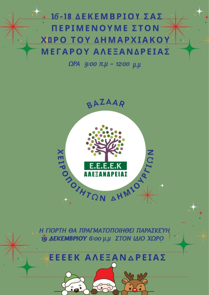 Χριστουγεννιάτικο bazaar του ΕΕΕΕΚ Αλεξάνδρειας και η γιορτή του σχολείου στο δημαρχείο