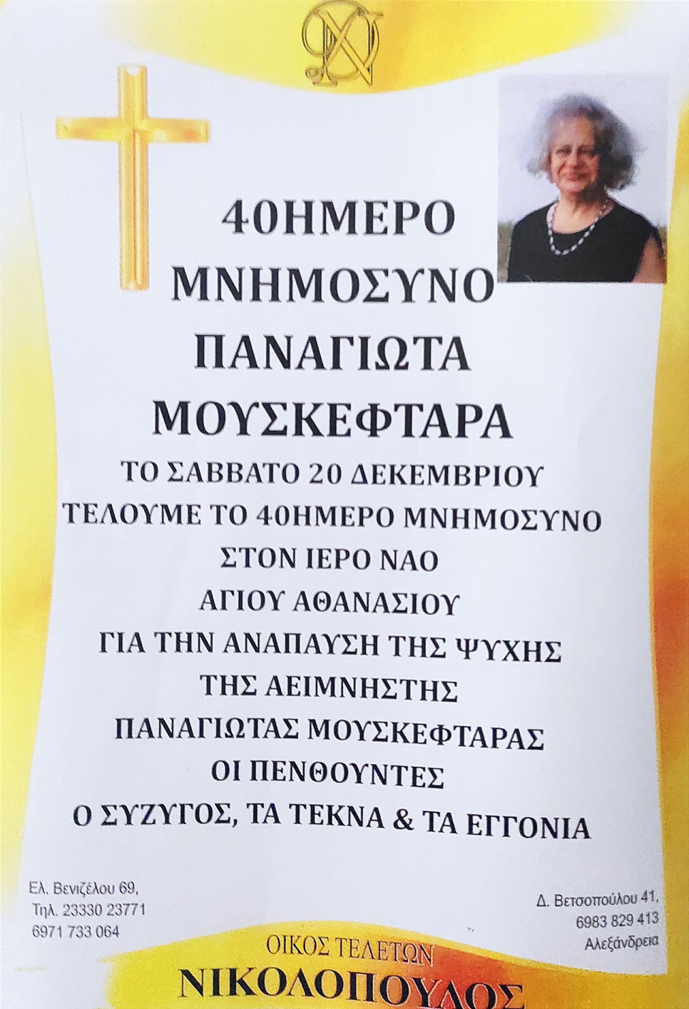 Το Σάββατο 20 και την Κυριακή 21 Δεκεμβρίου 2025 θα τελεσθούν 4οήμερα μνημόσυνα στους ιερούς ναούς του δήμου Αλεξάνδρειας.
