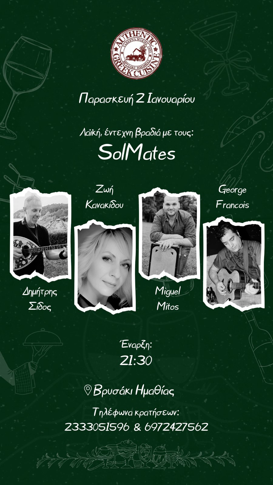 Το μουσικό σχήμα SolMates μετά τον χαμό που έκαναν πριν από λίγες ημέρες, επιστρέφουν για να μας χαρίσουν κέφι και όμορφες ερμηνείες.