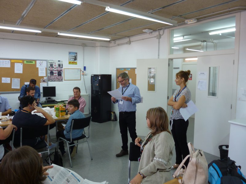 Οι δράσεις ξεκίνησαν την Παρασκευή 29 Σεπτεμβρίου με την επίσημη υποδοχή των αντιπροσωπειών από τους μαθητές και εκπαιδευτικούς του σχολείου. Το σχολείο «Institut Fonts del Glorieta» είναι μια σχολική μονάδα Δευτεροβάθμιας εκπαίδευσης με 300 περίπου μαθητές/τριες ηλικίας 12-18 ετών και βρίσκεται στη μικρή πόλη Alcover, 76 χιλιόμετρα από τη Βαρκελώνη. Οι μαθητές ξενάγησαν τους εταίρους στις εγκαταστάσεις, τους ενημέρωσαν για το εκπαιδευτικό σύστημα στη χώρα τους και έθεσαν ερωτήσεις στους εκπαιδευτικούς των άλλων χωρών. Στη συνέχεια ο Διευθυντής Pere Aguade καλωσόρισε όλες τις αντιπροσωπείες στην εθνική τους γλώσσα και αναφέρθηκε στη μέχρι τώρα πορεία και ωφελιμότητα του προγράμματος.
