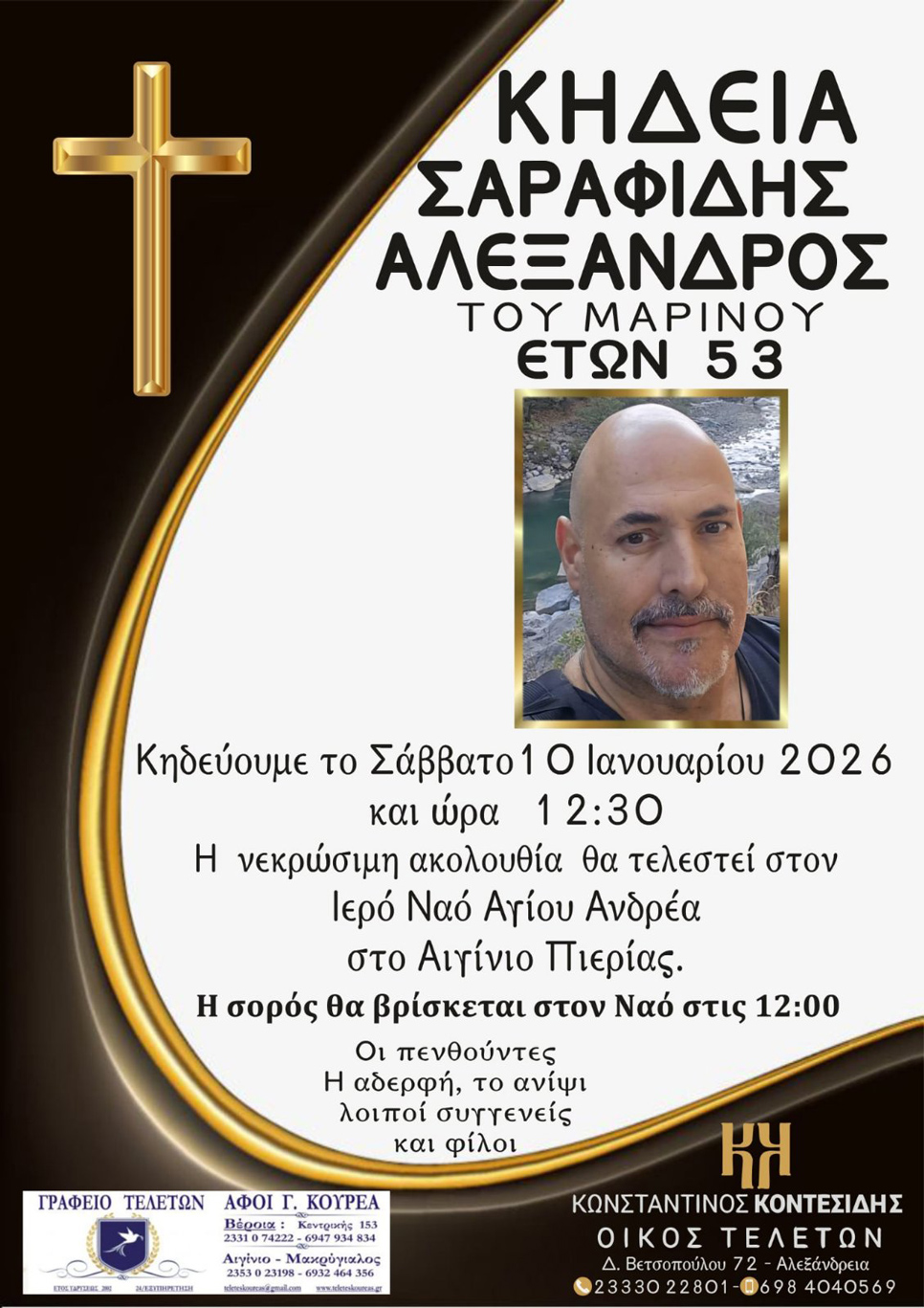 Σε ηλικία 53 ετών “έφυγε” από τη ζωή ο Αλέξανδρος Σαραφίδης.