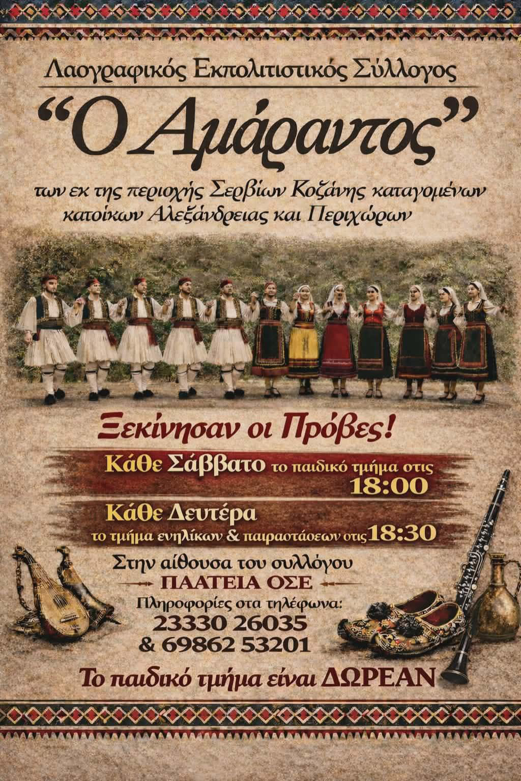 Ο Λαογραφικός Εκπολιτιστικός Σύλλογος «Ο Αμάραντος», ανακοίνωσε την έναρξη των προβών των χορευτικών του τμημάτων, δίνοντας νέα πνοή στη διατήρηση και τη διάδοση της παράδοσης.