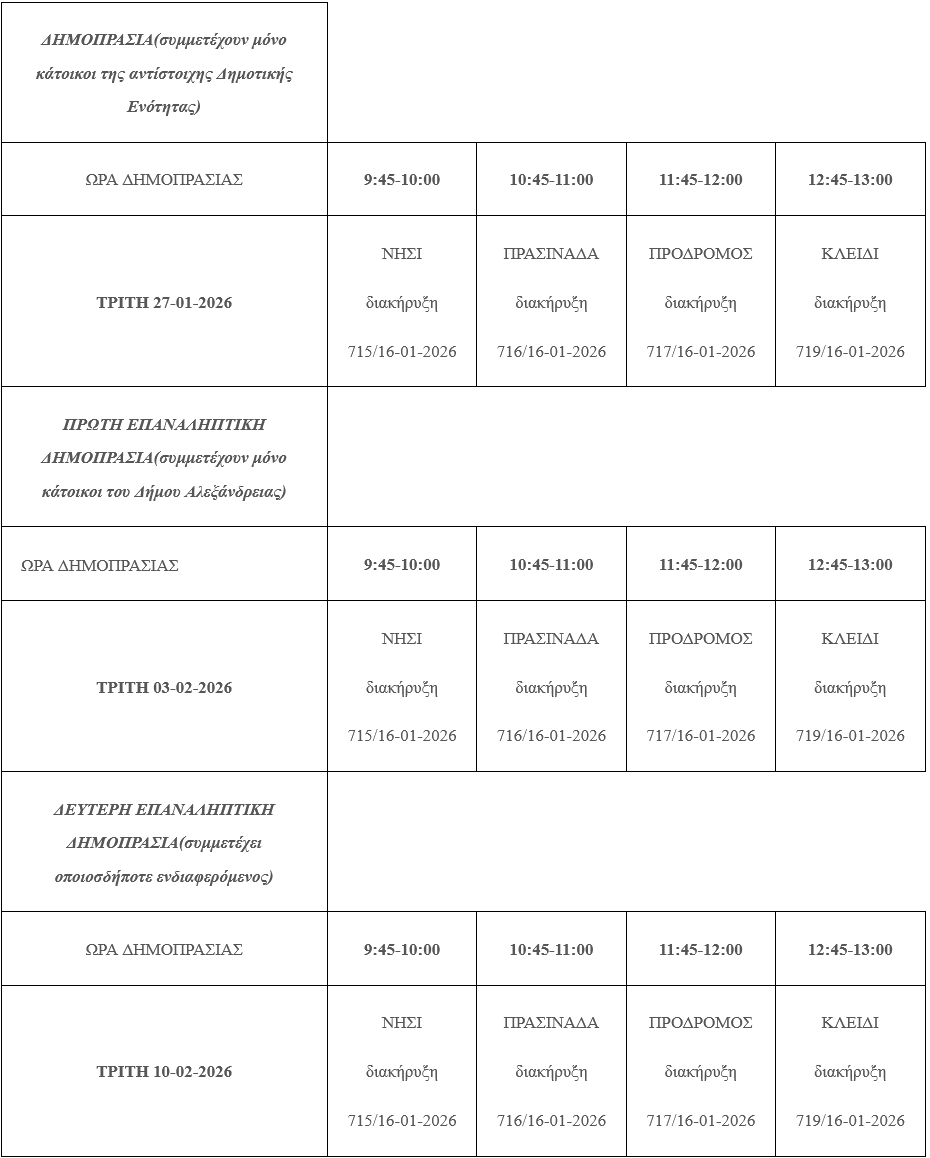 Από τον δήμο Αλεξάνδρειας ανακοινώθηκε: