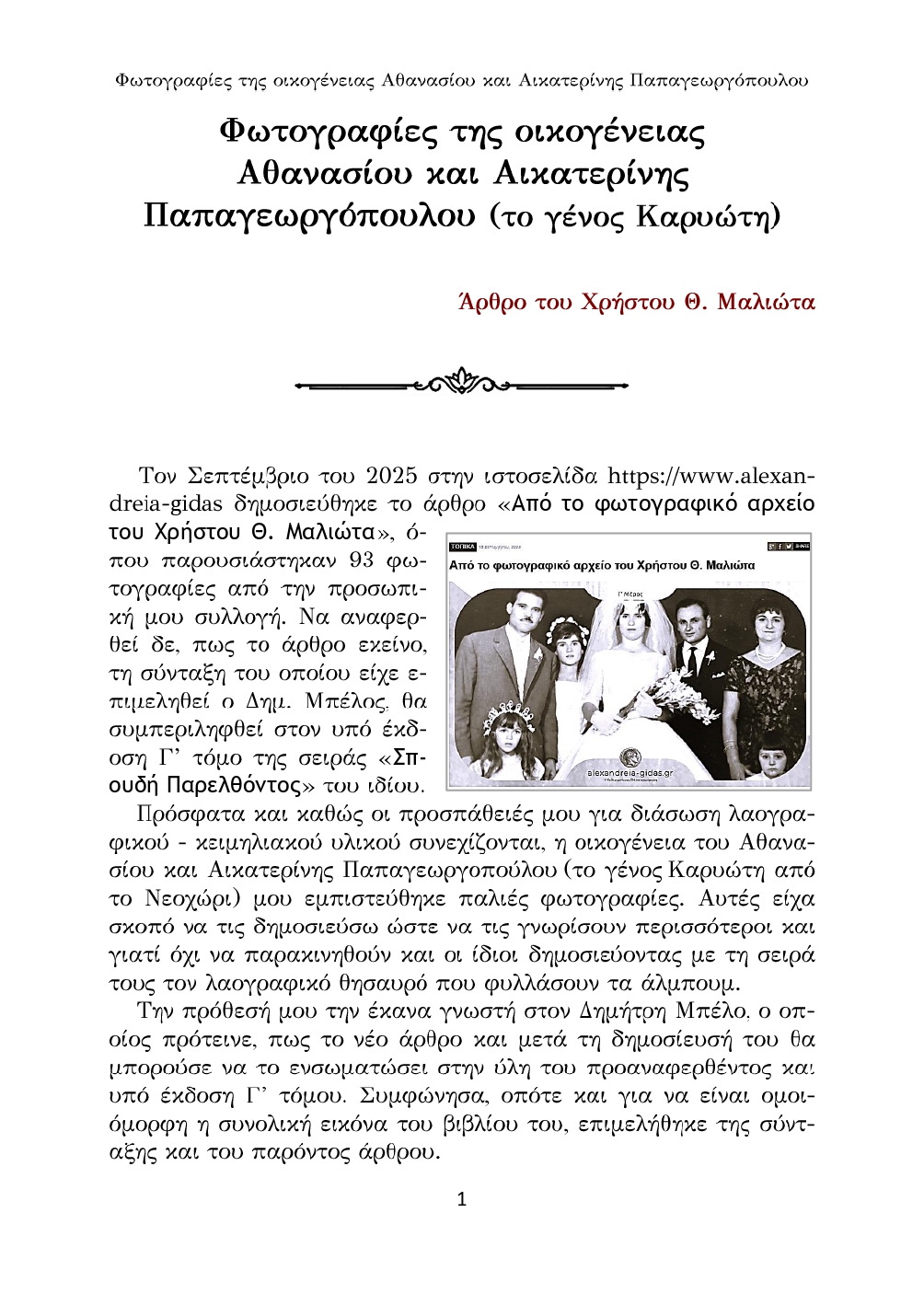 Φωτογραφίες της οικογένειας Αθανασίου και Αικατερίνης Παπαγεωργόπουλου (το γένος Καρυώτη)