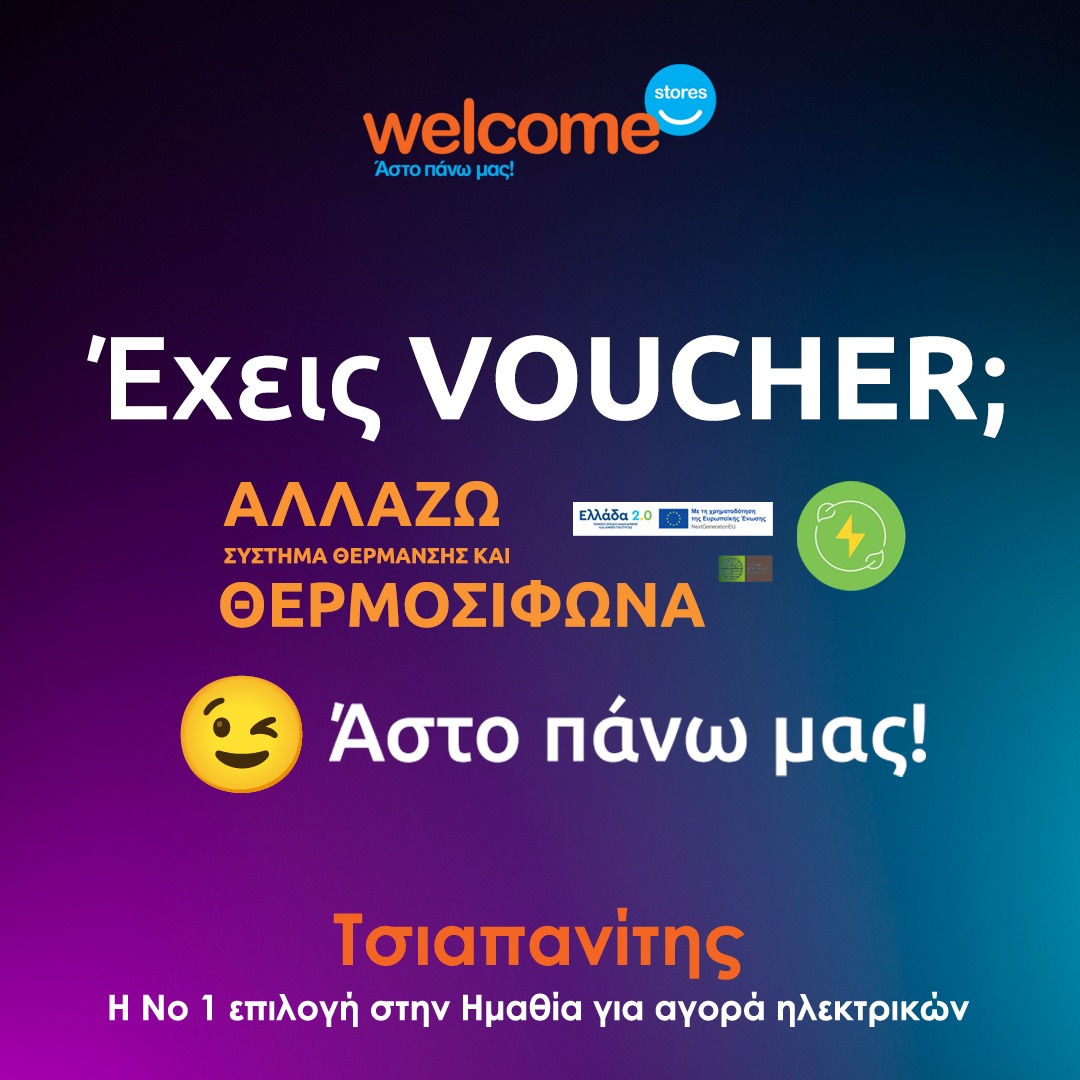 Στα καταστήματα Welcome Stores Τσιαπανίτης σε Αλεξάνδρεια και Βέροια θα βρεις κορυφαία μοντέλα σε Ηλιακούς Θερμοσίφωνες τους οποίους μπορείς να αγοράσεις μέσω του προγράμματος «Αλλάζω σύστημα θέρμανσης και θερμοσίφωνα» με επιδότηση έως και 60%.