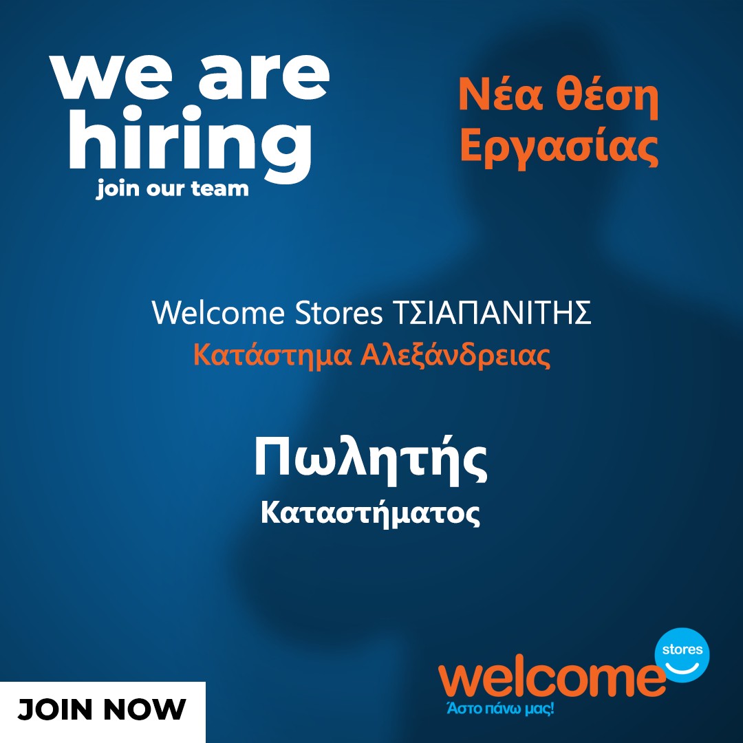 Νέα θέση εργασίας στα Welcome Stores ΤΣΙΑΠΑΝΙΤΗΣ, στο κατάστημα της Αλεξάνδρειας!