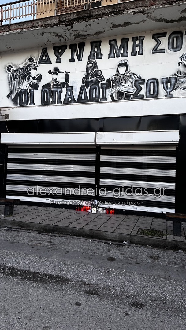 Στον Σ.Φ. ΠΑΟΚ Αλεξάνδρειας υπάρχουν από χτες κεριά και λουλούδια στη μνήμη των αδικοχαμένων νέων ανθρώπων.