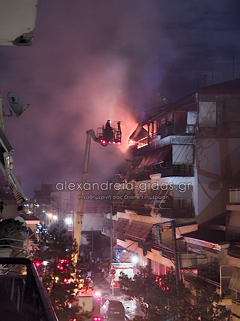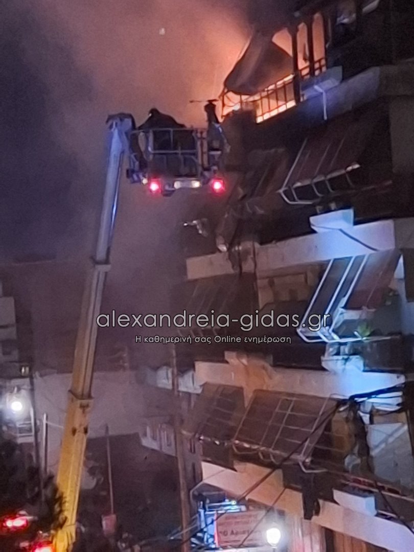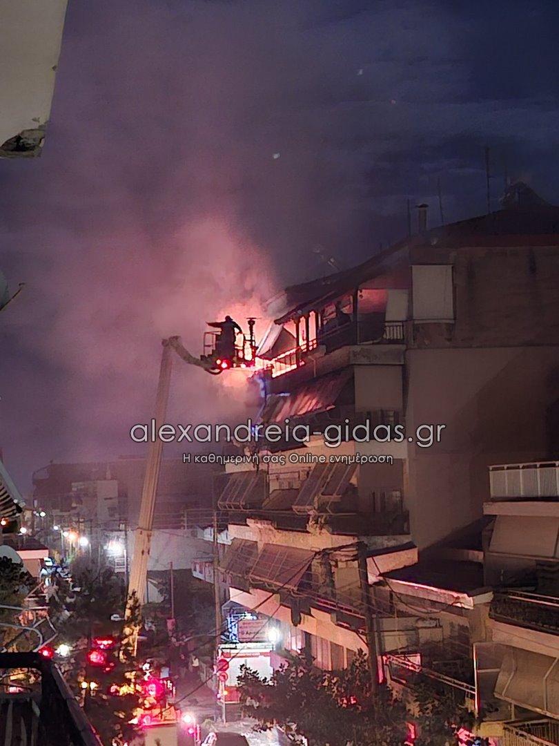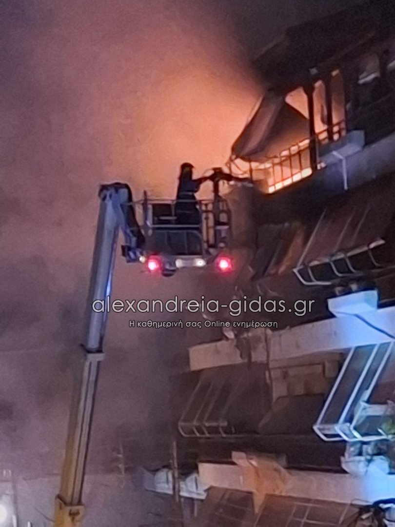 Μεγάλη καταστροφή από φωτιά υπέστησαν διαμερίσματα πολυκατοικίας στην Αλεξάνδρεια το βράδυ του Σαββάτου 31 Ιανουαρίου 2026.