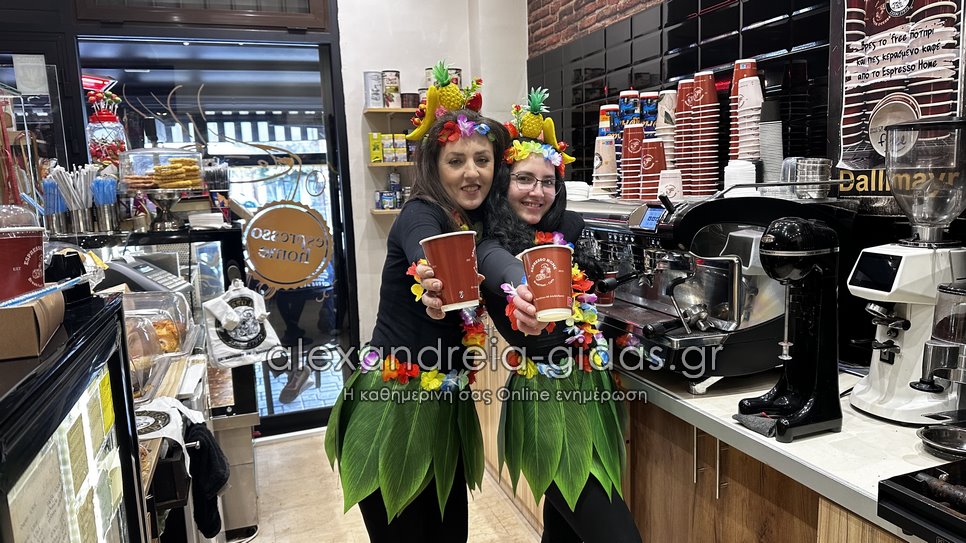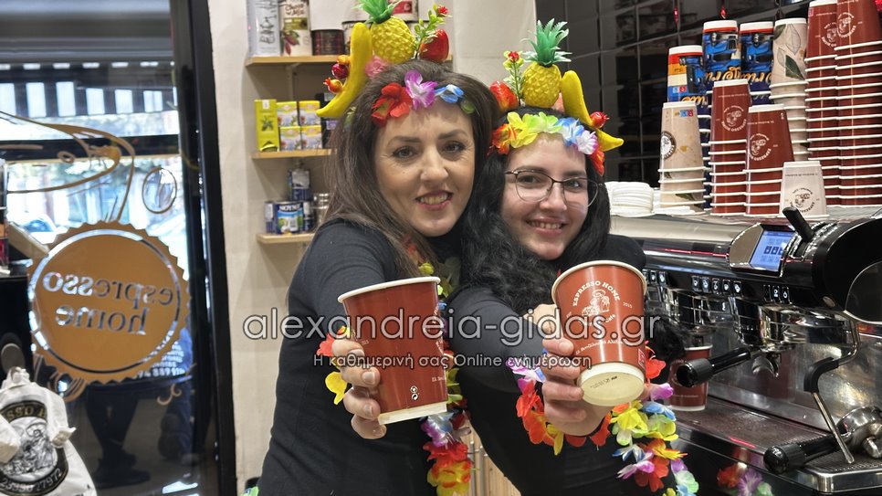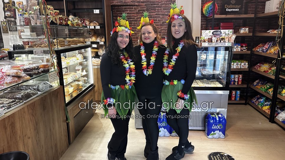 Τα κορίτσια του μαγαζιού σας υποδέχονται από το πρωί με τις αποκριάτικες στολές τους σαν να βρίσκονται στη Χονολουλου δίνοντας έτσι έναν διαφορετικό τόνο στη σημερινή ημέρα!