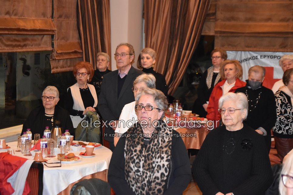 Την κοπή της βασιλόπιτας έκανε ο πατέρας Βασίλειος ενώ το φλουρί της βασιλόπιτας έπεσε στον Κώστα Στεφανάκη που απουσίαζε για λόγους υγείας. Στα βασιλοπιτάκια, το φλουρί βρήκε ο μικρός Αριστοτέλης που είναι ο μικρότερος εθελοντής του Ερυθρού Σταυρού Αλεξάνδρειας.