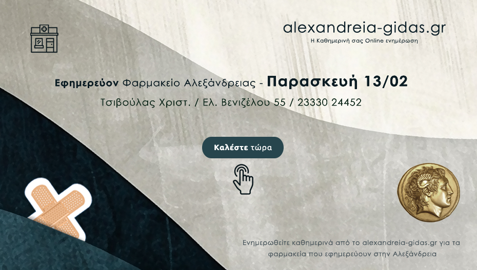 ΦΑΡΜΑΚΕΙΑ 13 Φεβρουαρίου, 2026 posted by admin Share Ποιο φαρμακείο εφημερεύει σήμερα Παρασκευή στην Αλεξάνδρεια 🔊 Ακούστε το άρθρο κάνοντας κλικ Αλεξάνδρεια: (κλικ στην εικόνα παρακάτω για να καλέσετε απευθείας το φαρμακείο) Αφήστε μια απάντηση Ακύρωση απάντησηςΗ ηλ. διεύθυνση σας δεν δημοσιεύεται. Τα υποχρεωτικά πεδία σημειώνονται με *Σχόλιο * Όνομα Email Ιστότοπος Αποθήκευσε το όνομά μου, email, και τον ιστότοπο μου σε αυτόν τον πλοηγό για την επόμενη φορά που θα σχολιάσω.