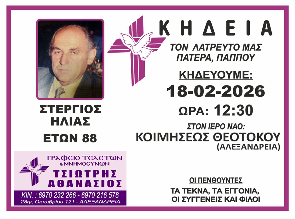 “Έφυγε” από τη ζωή ο Στέργιος Ηλίας.