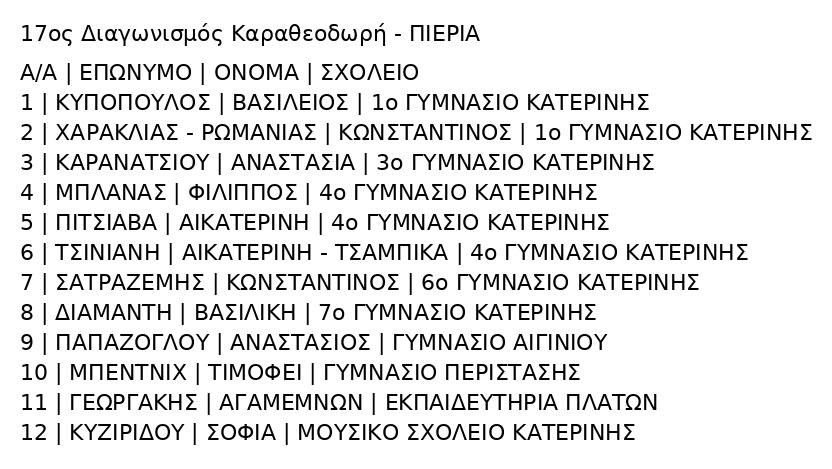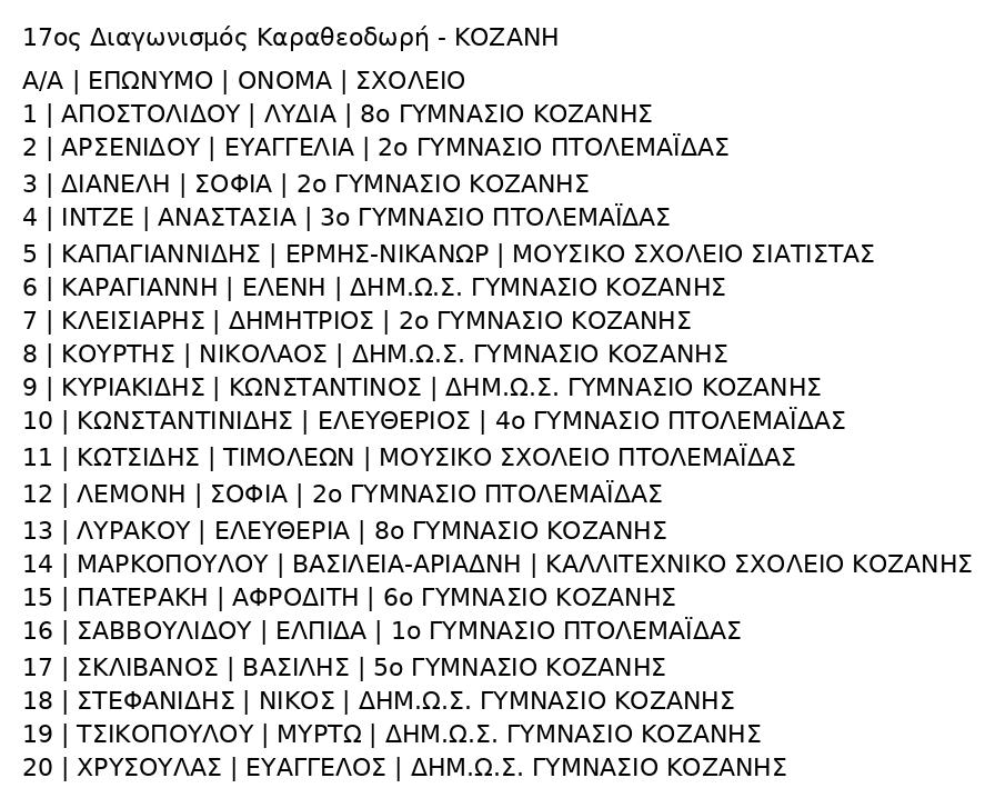 – τους μαθητές και τις μαθήτριες που συμμετείχαν στον ευγενή αγώνα του πνεύματος και τους καλούμε να συνεχίσουν την προσπάθεια.