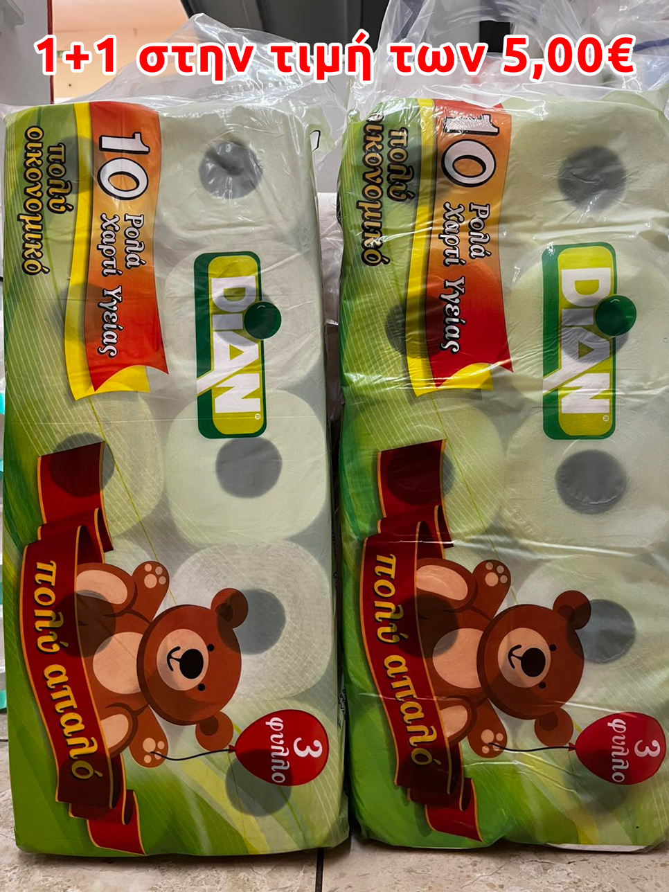 Χαρτί υγείας DIAN 3φυλλο 10 ρολλά 1+1 στην τιμή των 5,00 ευρώ (2,99 το ένα)