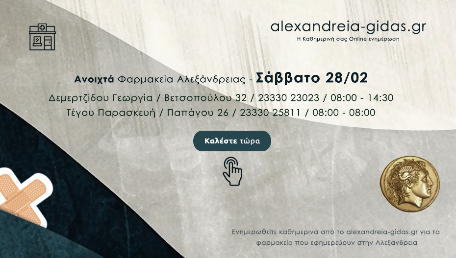ΦΑΡΜΑΚΕΙΑ 28 Φεβρουαρίου, 2026 posted by admin Share Ποια φαρμακεία είναι ανοιχτά σήμερα Σάββατο στην Αλεξάνδρεια 🔊 Ακούστε το άρθρο κάνοντας κλικ Αλεξάνδρεια: Αφήστε μια απάντηση Ακύρωση απάντησηςΗ ηλ. διεύθυνση σας δεν δημοσιεύεται. Τα υποχρεωτικά πεδία σημειώνονται με *Σχόλιο * Όνομα Email Ιστότοπος Αποθήκευσε το όνομά μου, email, και τον ιστότοπο μου σε αυτόν τον πλοηγό για την επόμενη φορά που θα σχολιάσω.