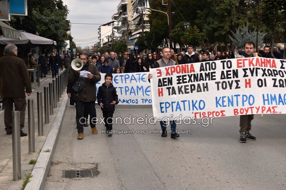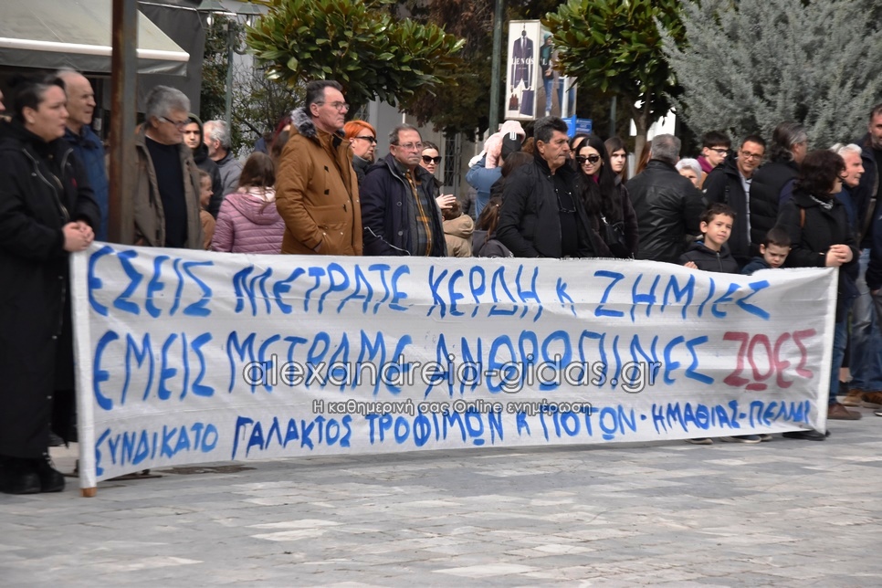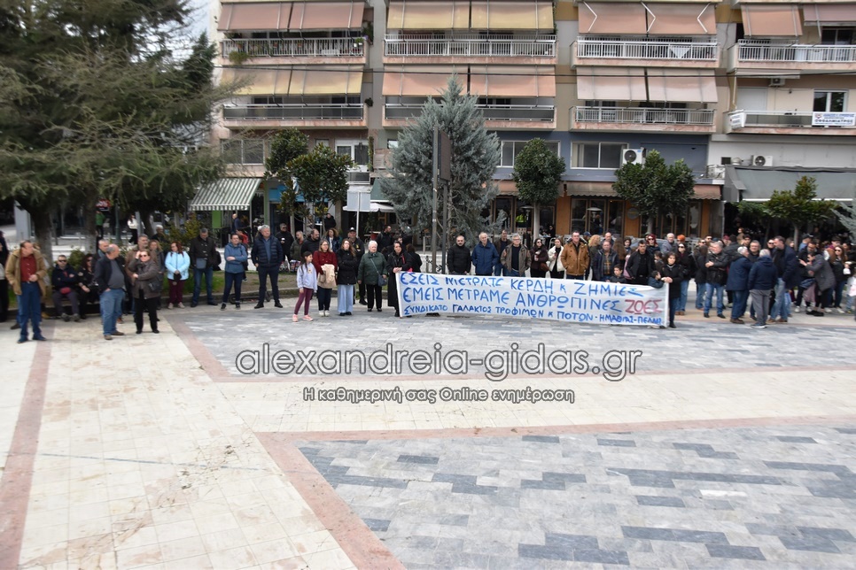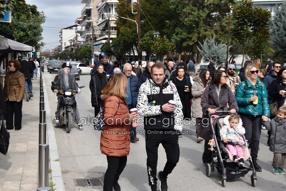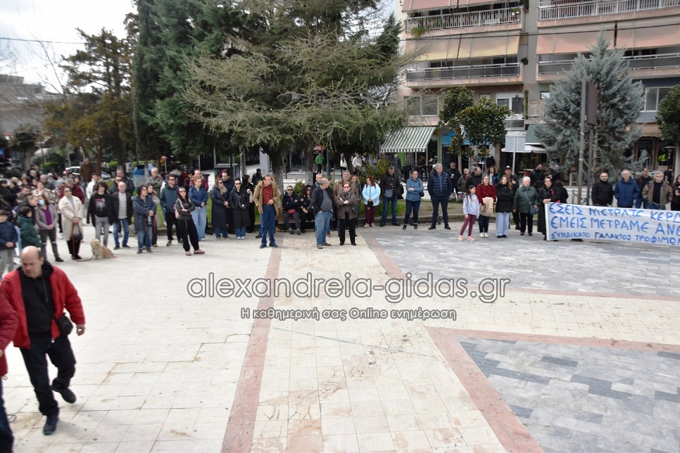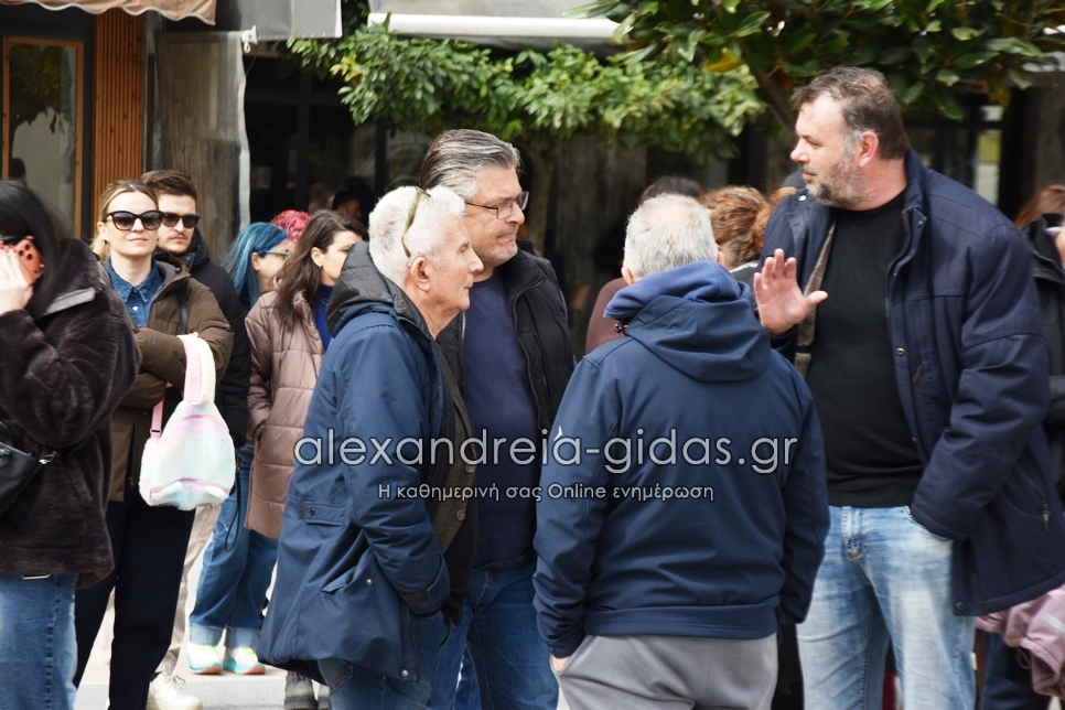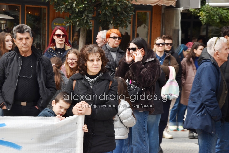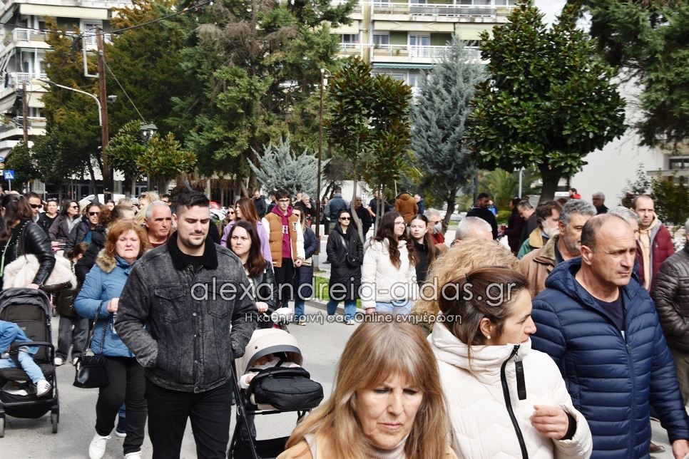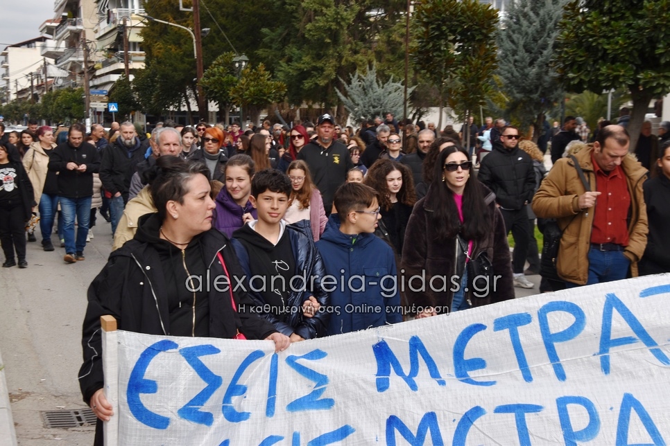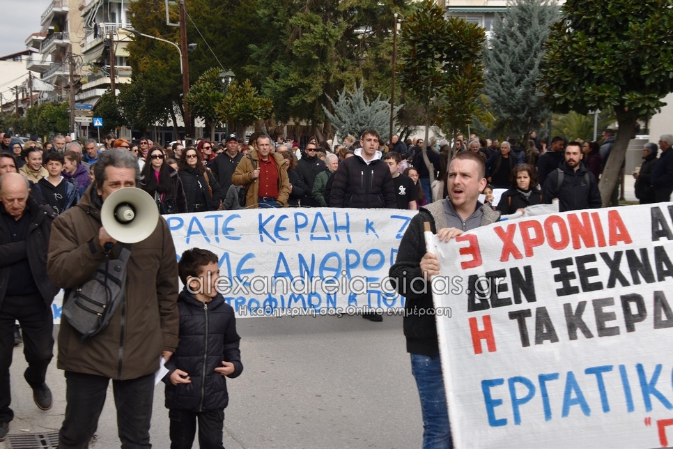 Η συγκέντρωση έγινε μπροστά στο Πνευματικό Κέντρο Αλεξάνδρειας και ακολούθησε πορεία μέχρι τον Σιδηροδρομικό Σταθμό.