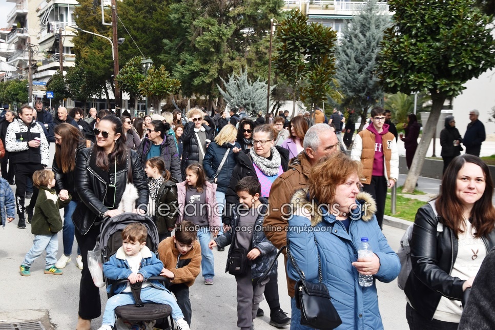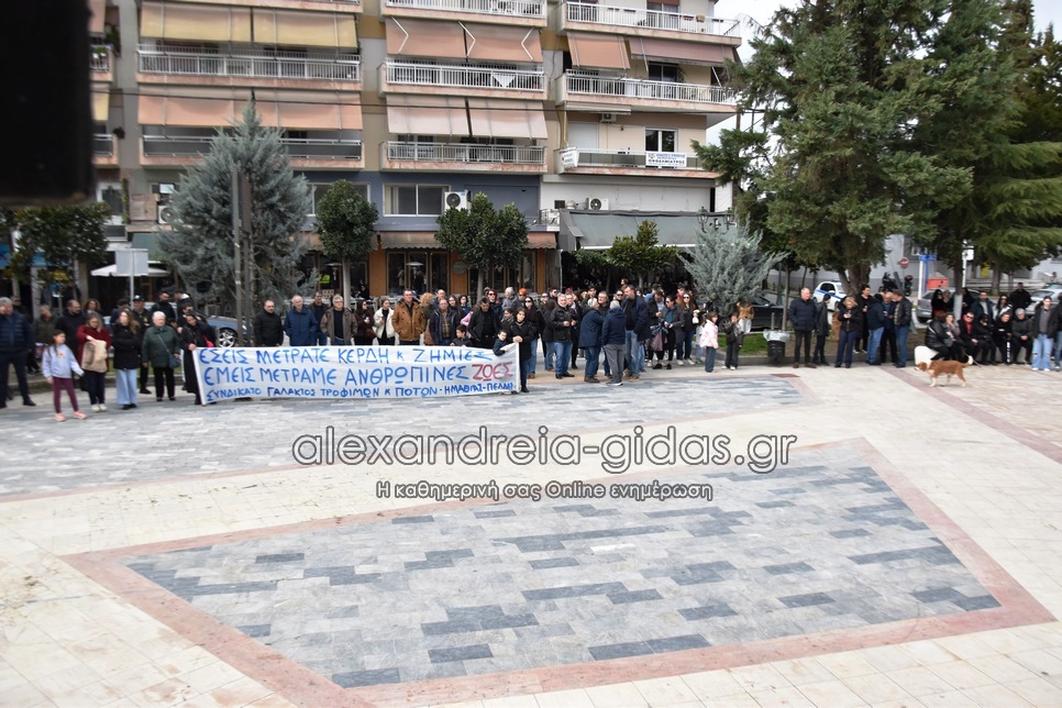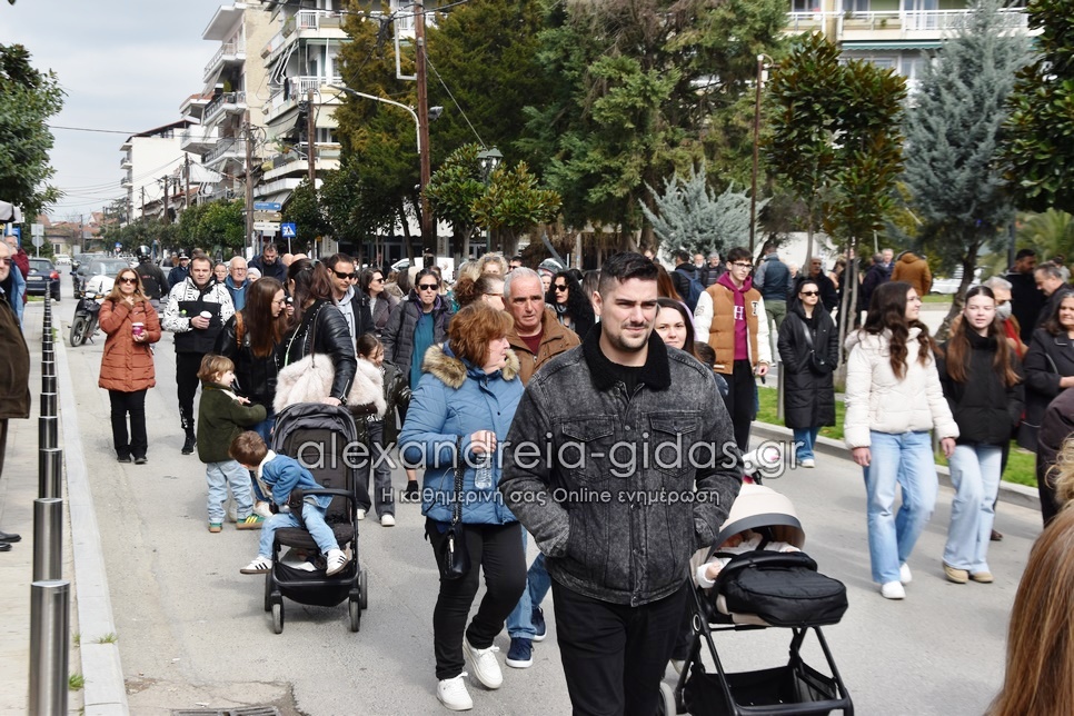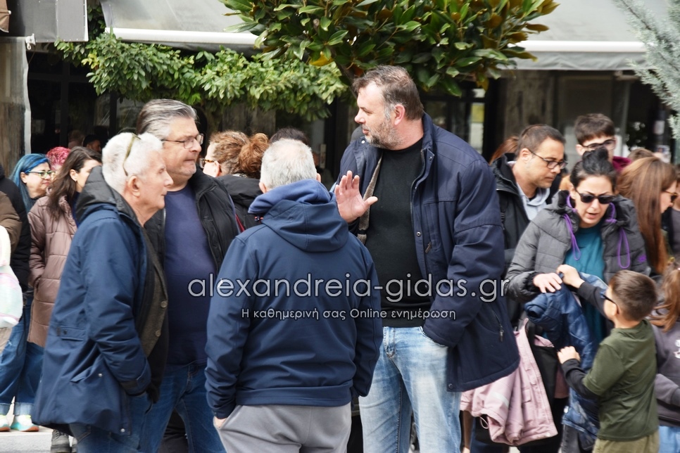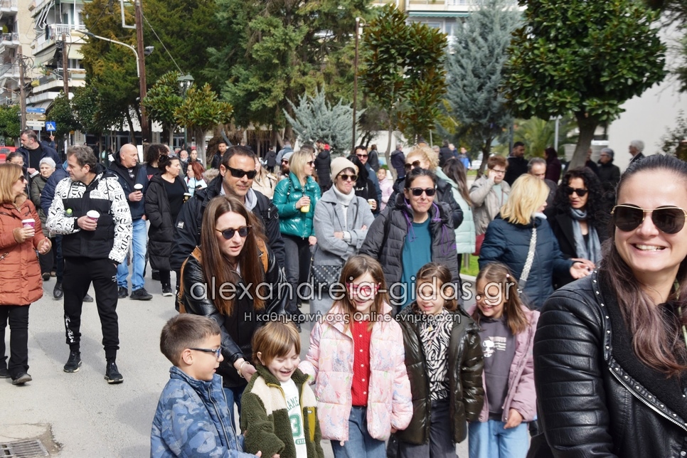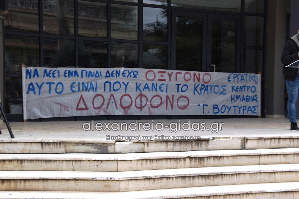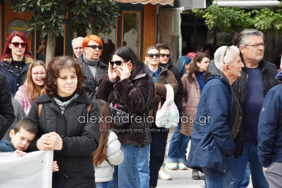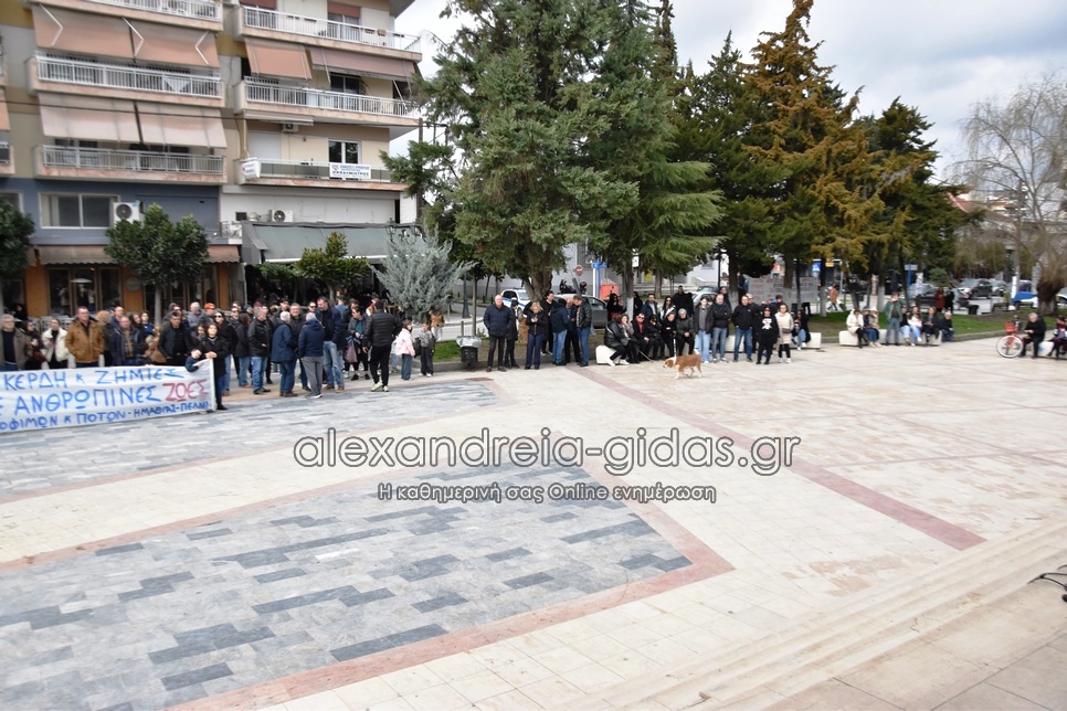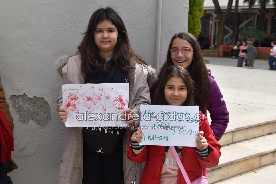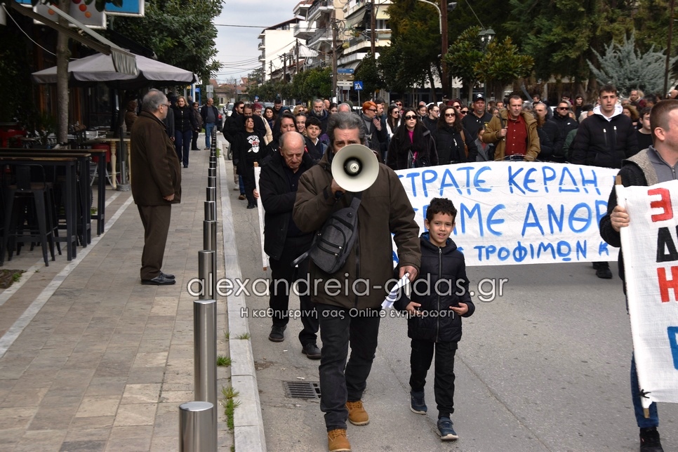 Η συγκέντρωση έγινε μπροστά στο Πνευματικό Κέντρο Αλεξάνδρειας και ακολούθησε πορεία μέχρι τον Σιδηροδρομικό Σταθμό.