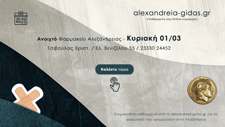 ΦΑΡΜΑΚΕΙΑ 1 Μαρτίου, 2026 posted by admin Share Ποιο φαρμακείο είναι ανοιχτό σήμερα Κυριακή στην Αλεξάνδρεια 🔊 Ακούστε το άρθρο κάνοντας κλικ Αλεξάνδρεια: (κλικ στην εικόνα παρακάτω για να καλέσετε απευθείας το φαρμακείο) Αφήστε μια απάντηση Ακύρωση απάντησηςΗ ηλ. διεύθυνση σας δεν δημοσιεύεται. Τα υποχρεωτικά πεδία σημειώνονται με *Σχόλιο * Όνομα Email Ιστότοπος Αποθήκευσε το όνομά μου, email, και τον ιστότοπο μου σε αυτόν τον πλοηγό για την επόμενη φορά που θα σχολιάσω.