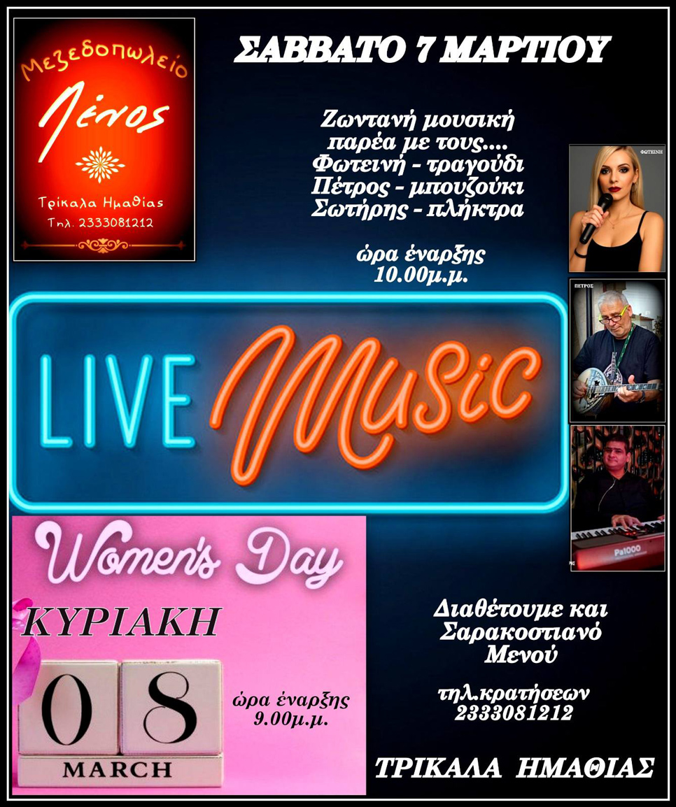 To Σάββατο 7 Μαρτίου 2026 και την Κυριακή 8 Μαρτίου 2026 ανήμερα της Ημέρας της Γυναίκας, η ταβέρνα ΛΕΝΟΣ υποδέχεται την Φωτεινή στο τραγούδι, τον Πέτρο στο μπουζούκι και τον Σωτήρη στα πλήκτρα!