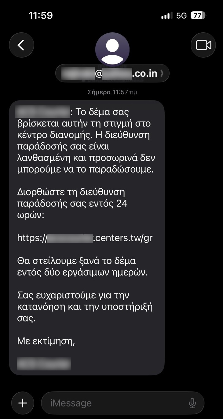 Αν λάβεις παρόμοιο sms, σε καμία περίπτωση μην πατήσεις τον σύνδεσμο (link)! Είναι απάτη!
