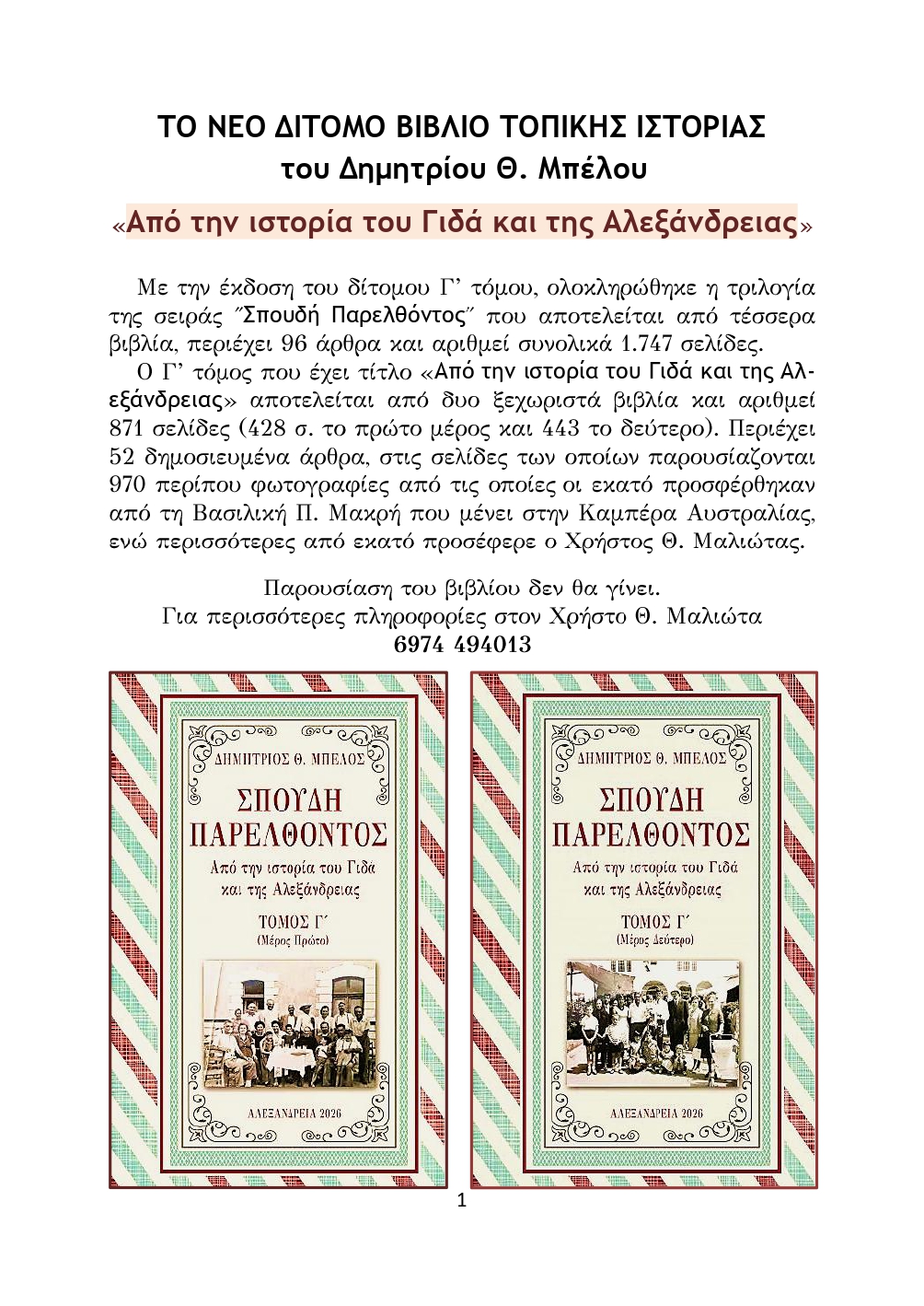 ΤΟΠΙΚΑ 29 Απριλίου, 2026 posted by admin Share “Από την ιστορία του Γιδά και της Αλεξάνδρειας”: Το νέο δίτομο βιβλίο του Δημήτρη Μπέλου! Καλοτάξιδο! Αφήστε μια απάντηση Ακύρωση απάντησηςΗ ηλ. διεύθυνση σας δεν δημοσιεύεται. Τα υποχρεωτικά πεδία σημειώνονται με *Σχόλιο * Όνομα Email Ιστότοπος Αποθήκευσε το όνομά μου, email, και τον ιστότοπο μου σε αυτόν τον πλοηγό για την επόμενη φορά που θα σχολιάσω.