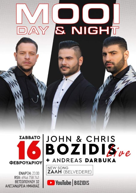 Το Σάββατο 16 Φεβρουαρίου οι John & Chris Bozidis μαζί με τον Andreas Darbuka επιστρέφουν στην Αλεξάνδρεια και υπόσχονται διασκέδαση μέχρι το πρωί!