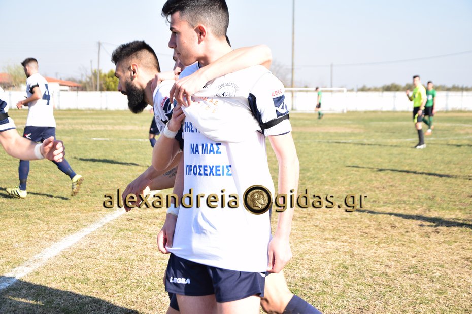 Στο 43΄οι γηπεδούχοι έφτασαν στην ισοφάριση όταν ο Θ. Παπαδόπουλος με ψηλοκρεμαστή κεφαλιά δεν άφησε περιθώρια αντίδρασης στον Ζάχο (1-1) σκοράροντας σε ένα κρίσιμο σημείο λίγο πριν την ανάπαυλα του ημιχρόνου.