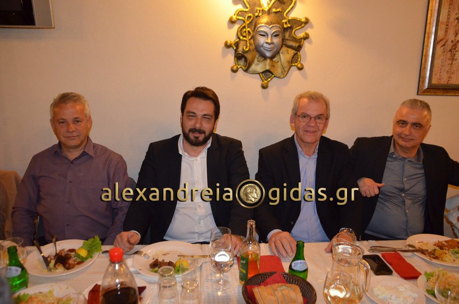Στο ίδιο τραπέζι και ο δημοτικός σύμβουλος Μόσχος Κυτούδης με τον Σάκη Μπουκουβάλα που θα είναι υποψήφιοι του συνδυασμού του Μιχάλη Χαλκίδη.